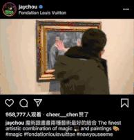 他願意花八千萬拍賣下David Hockney的畫,也願意親自到工作室支持Will Martyr的創作。在周杰倫的Instagram上可以看到,他幾乎每去一個城市,都一定要打卡當地的美術館。並不是普通的“網紅打卡式拍照”,而是有自己風格偏好的“選擇性欣賞”,有時甚至還會搞怪的結合藝術品來一場“魔術show”
