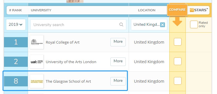 那麼,我們今天就以GSA的強勢專業領域——設計創新為例,看看GSA在英國藝術院校中到底處於怎樣的位置?