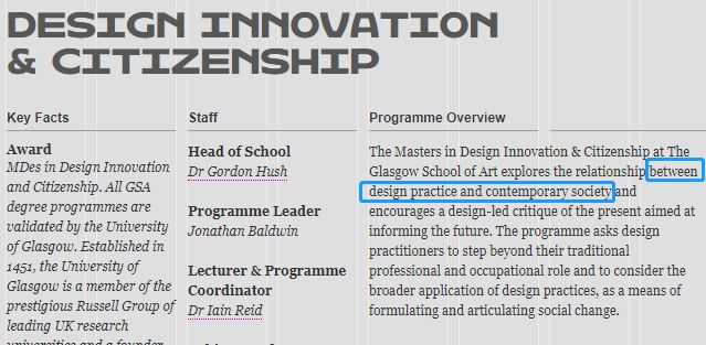 GSA認為,設計師首先是公民,需要具有反思能力和危機意識。所以課程計劃中最重要的目的,除了培養學生掌握界面設計、服務和交互體驗的主流交互設計領域的知識外,還應該具備挑戰當前設計實踐的方法和理論研究。