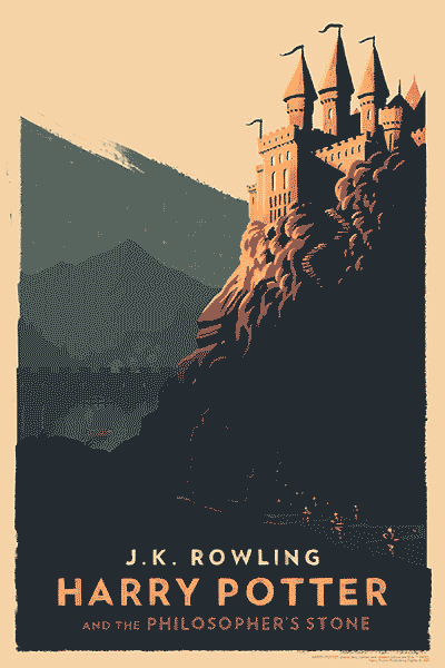 這套海報名稱叫“Hogwarts”,因為取景是學校城堡和七部曲的一些關鍵元素,其實是為原著製作的海報,因為《死亡聖器》原著沒有分上下,而且電影上部也與學校幾乎沒有關係。從入學時的帆船、飛行的汽車、銀色牡鹿守護神、三強爭霸賽、夜騏和馬人、食死徒與黑魔標記,到最後的三人手拉手,看過原著多年後再看這套海報,心裡也是滿滿的溫情。