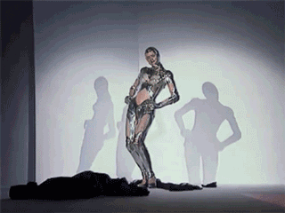 一方面是被塑造成誇張的而正是因為Thierry Mugler筆下的女性形象並不是人類,所以她們對所處的環境,沒有現實社會裡的到的評判,可以不被現實社會重重枷鎖所禁錮,可以自由、盡情的展現自己。