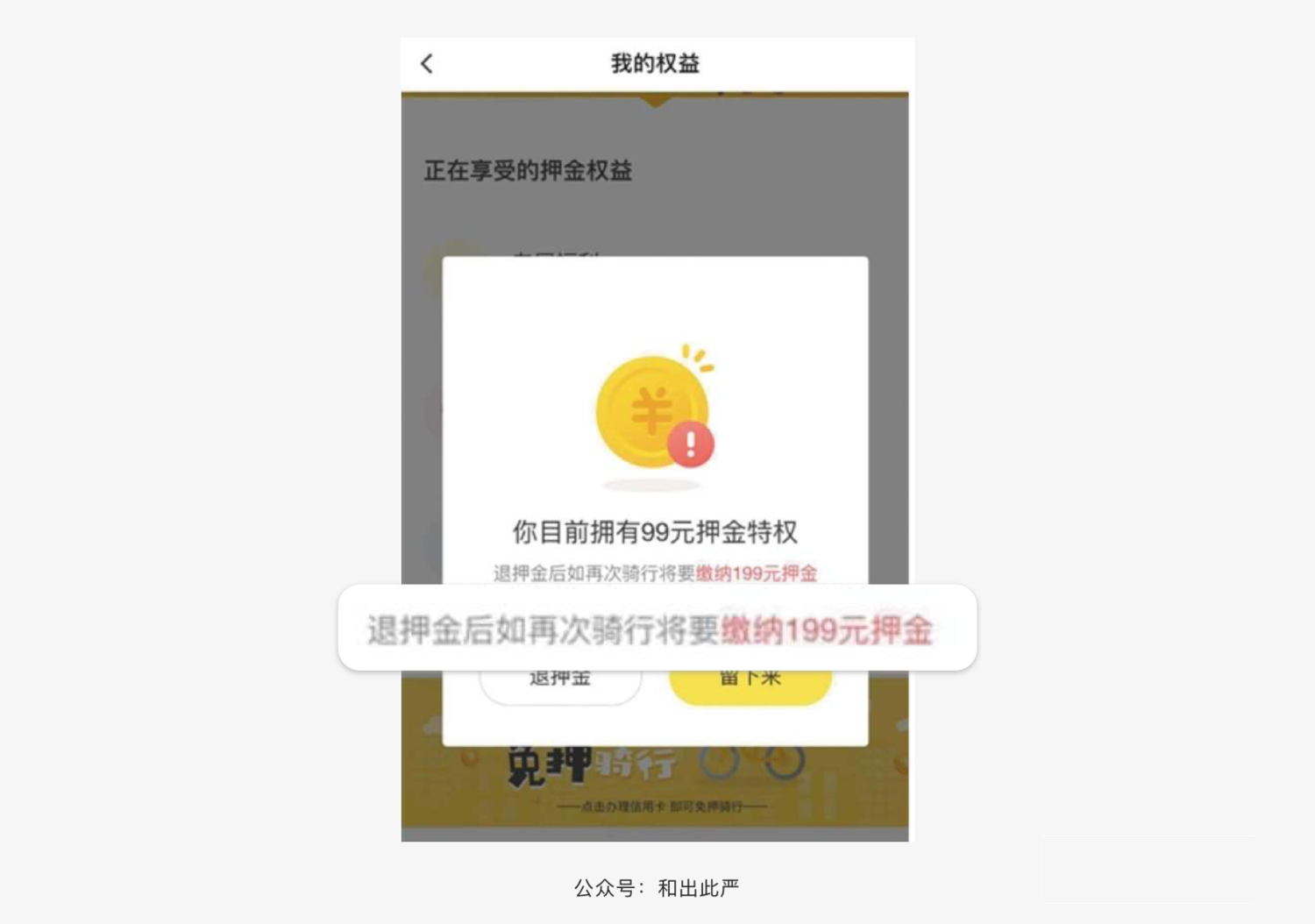 如ofo在押金提現上,會提示用戶下次騎行需要繳納多餘199元的押金,即付出更多的金錢成本,這種更多成本的投入會用戶顧慮,是否放棄押金的提現。