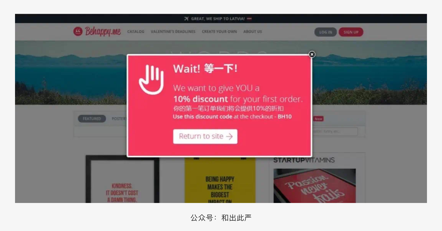 比如Behappy.me,對於新用戶離開時會有'今日下單就優惠10%'的挽留提示,以此減少新用戶流失,將新用戶向'付費用戶'轉移。