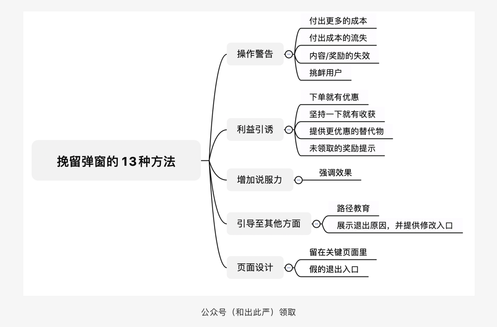 首先說明一點,留住用戶更多依靠產品內容本身的質量與吸引力。挽留彈窗只是防止用戶流失、促進商品與內容轉化的最後一道'防線',起到'阻流'作用。