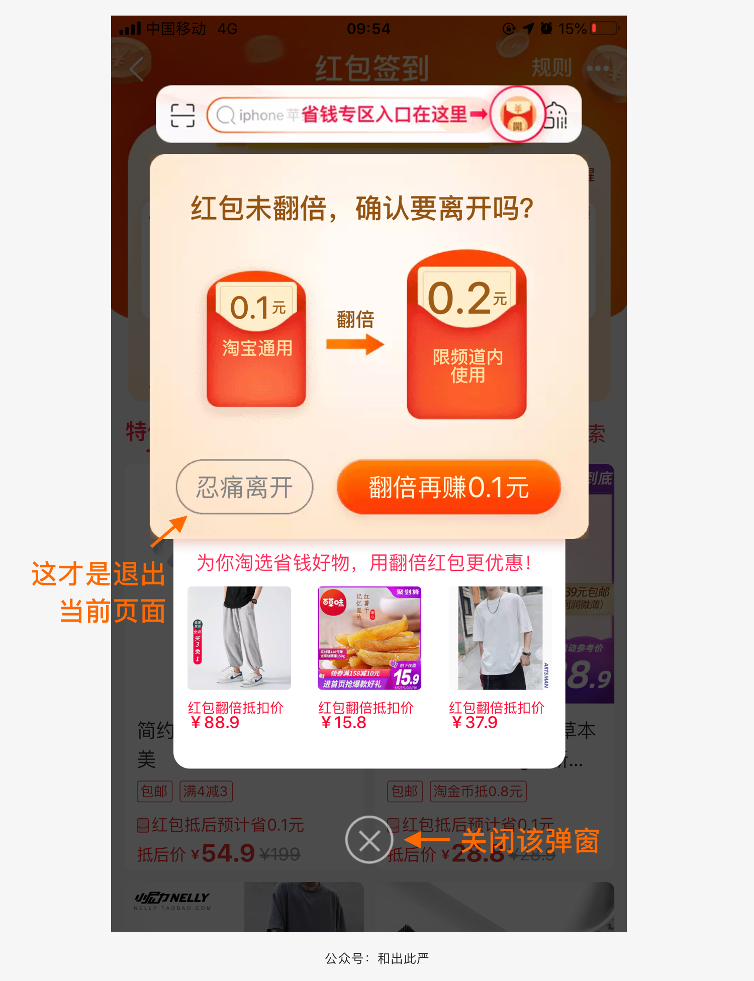 而有些挽留彈窗把“退出當前頁面”和“關閉該彈窗”的感知模糊掉,使用戶習慣性地點擊“關閉”圖標,只是關閉掉該對話框提示而已,並非退出當前頁面(入口設計得不易找到),依然還留在了當前討人厭的界面裡。
