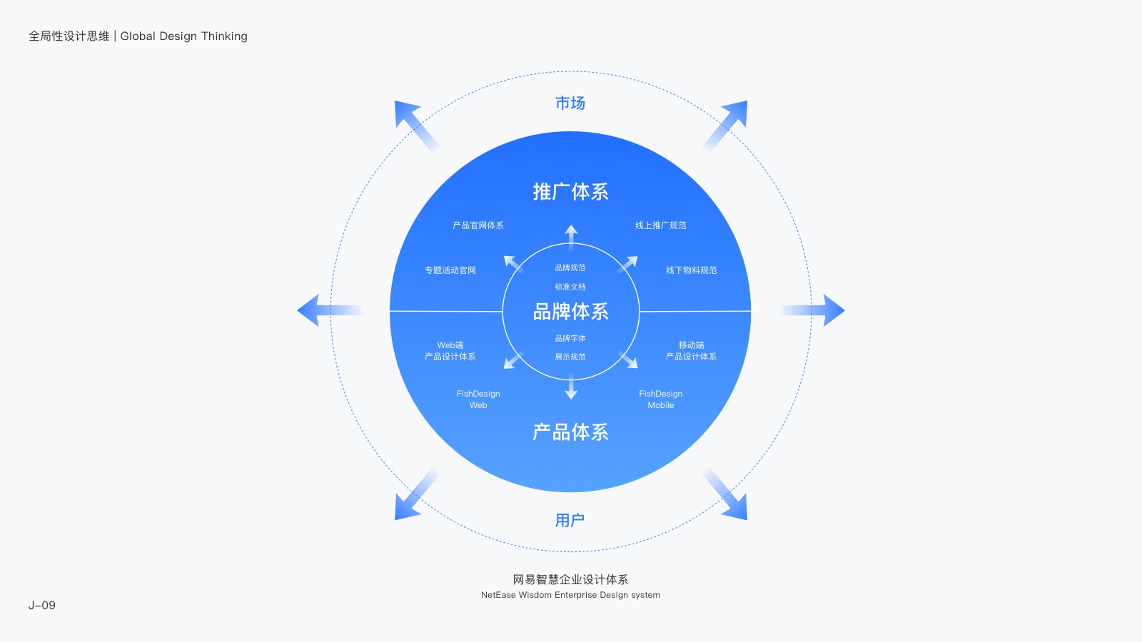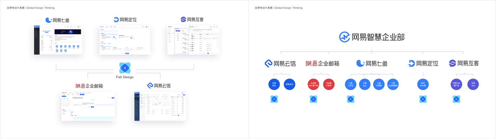 這是我一直在探索並實踐的一種設計思維。從最開始的理論雛形,到各種項目的實踐,不斷進行修正和完善,最終形成了一套卓有成效的思維方式。通過這種思維方式,我逐步幫助產品解決了許多長期性的問題,並最終構建了各種不同類型的設計體系。最終,隨著品牌矩陣與產品體系的落地,形成了一個完整的網易智慧企業設計體系。
