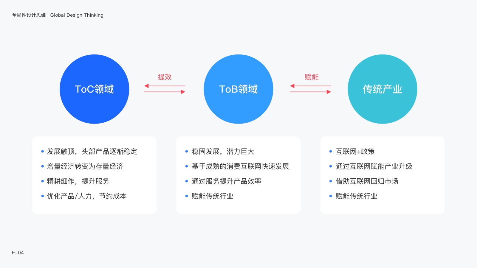 在“成本”與“效率”的雙重壓力下,再加上整個市場經濟的下行週期,整體經濟出現下滑,而一些依靠融資的互聯網公司將難以為繼。因此企業不得不尋找方式來提升效率,降低成本——而這正是企業級軟件(ToB產品)最擅長的地方。