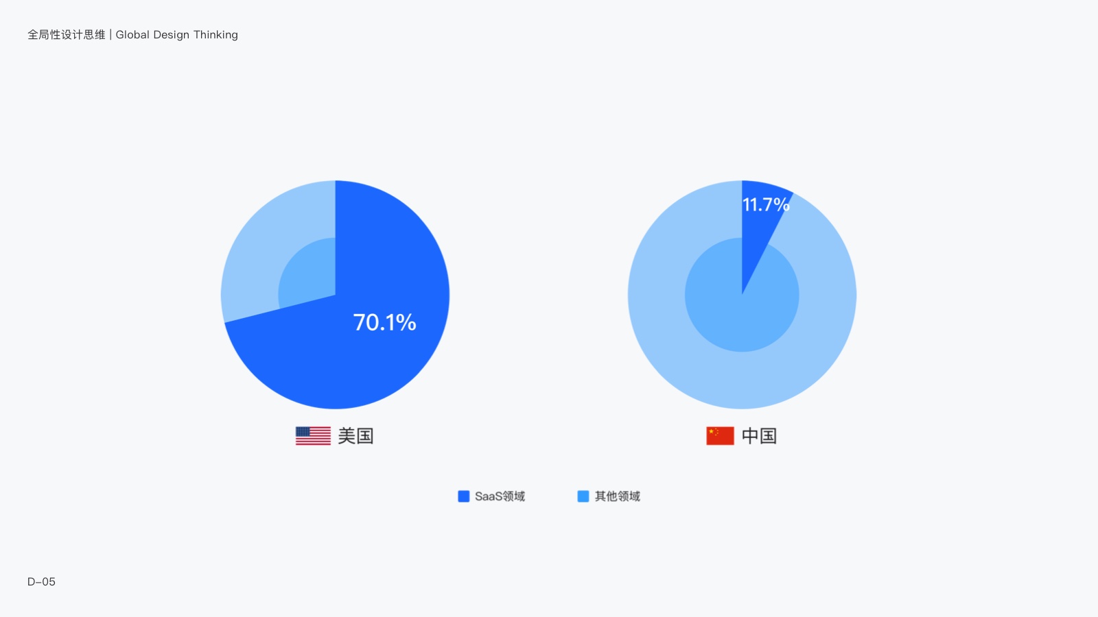 同時,對比B端中云計算領域的IaaS、PaaS、SaaS三層架構,全球市場中SaaS佔據了52.5%的份額,在中國卻是IaaS分走了最大的蛋糕,佔比達61.2%。中國市場VC的投資總額已經與美國相當,在SaaS領域美國企業獲得了全球70.1%的融資,而中國祇有11.7%。