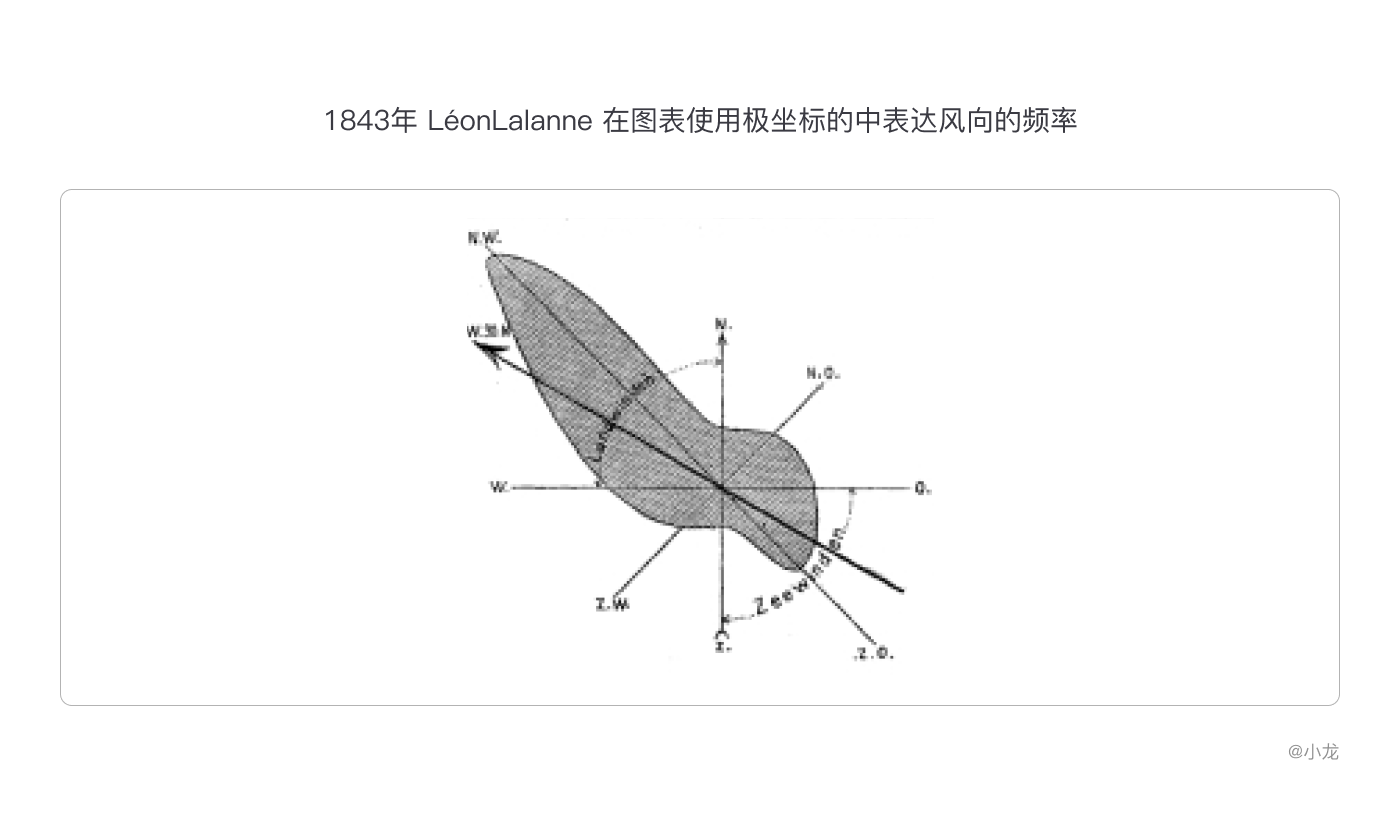 1843年LéonLalanne 在圖表使用極坐標的中表達風向的頻率。