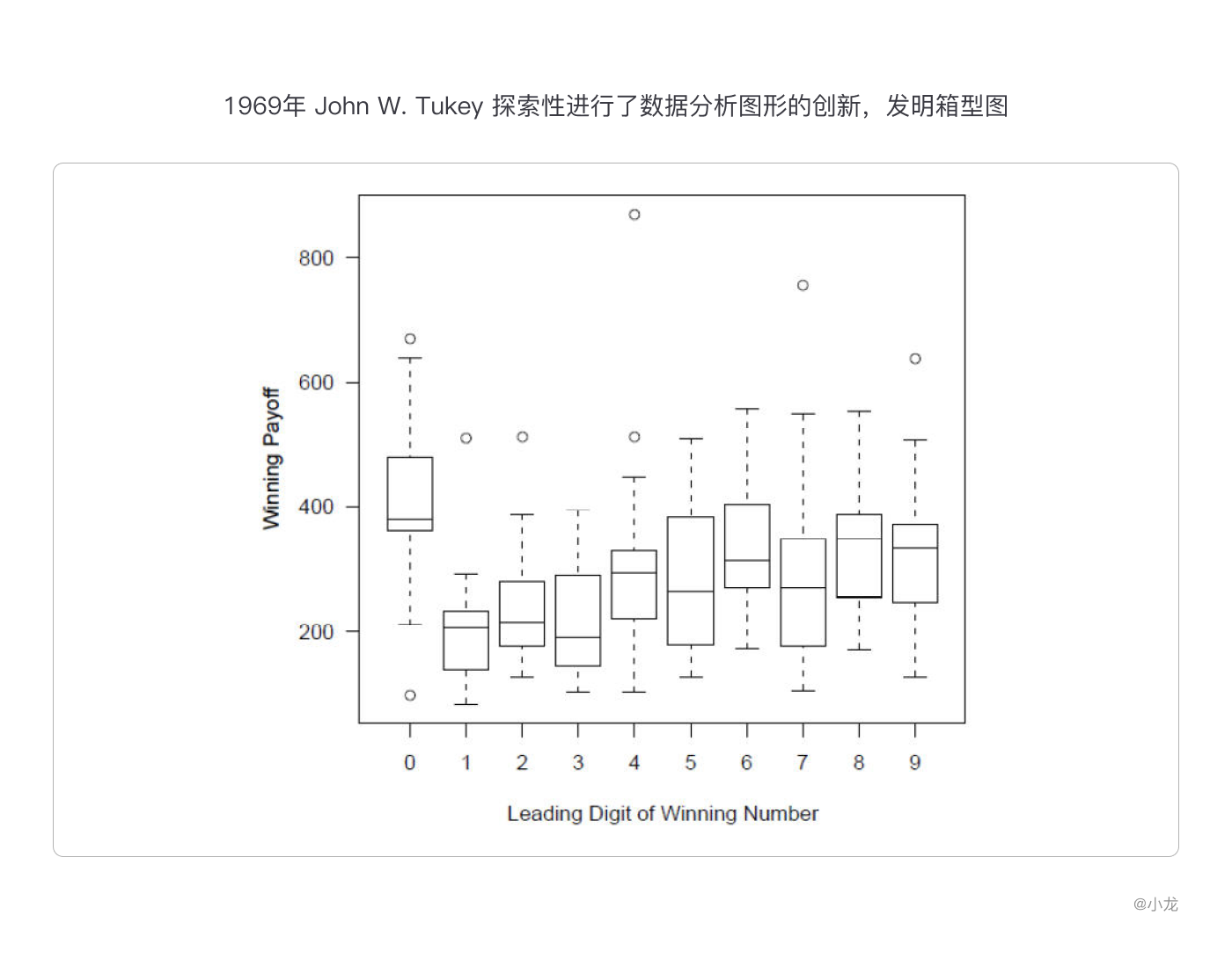 1969年John W. Tukey 探索性進行了數據分析圖形的創新,發明箱型圖。