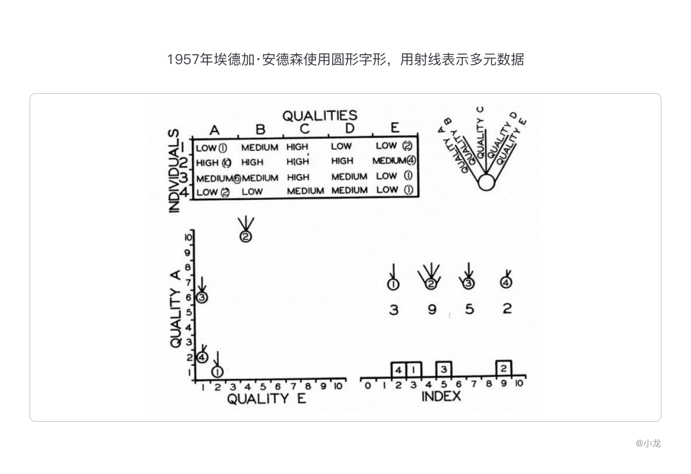 1957年埃德加·安德森使用圓形字形,用射線表示多元數據。