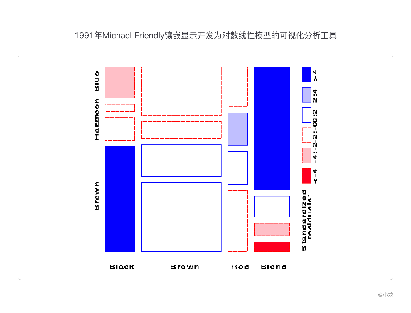 1991年Michael Friendly鑲嵌顯示開發為對數線性模型的可視化分析工具。
