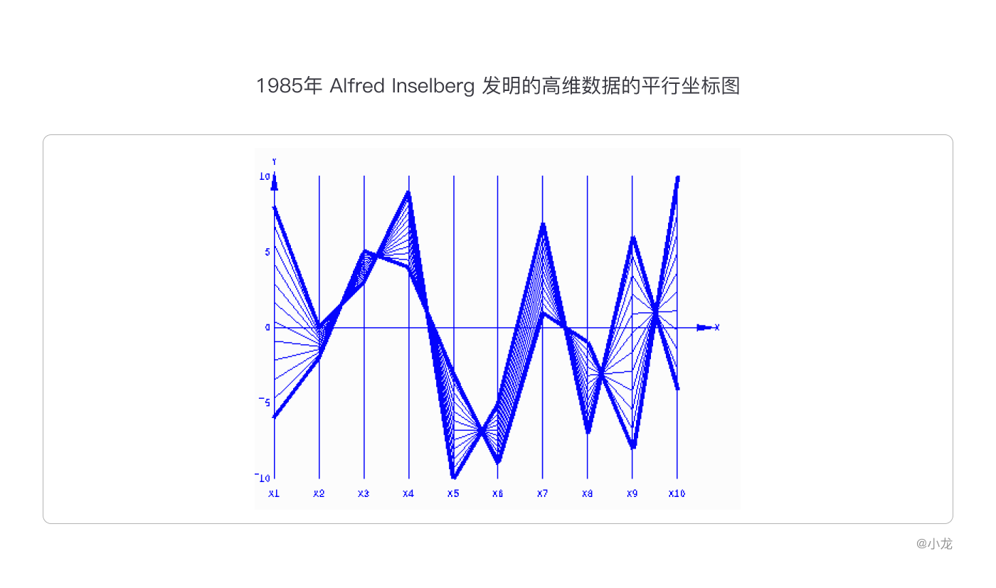 1985年Alfred Inselberg 發明的高維數據的平行坐標圖。