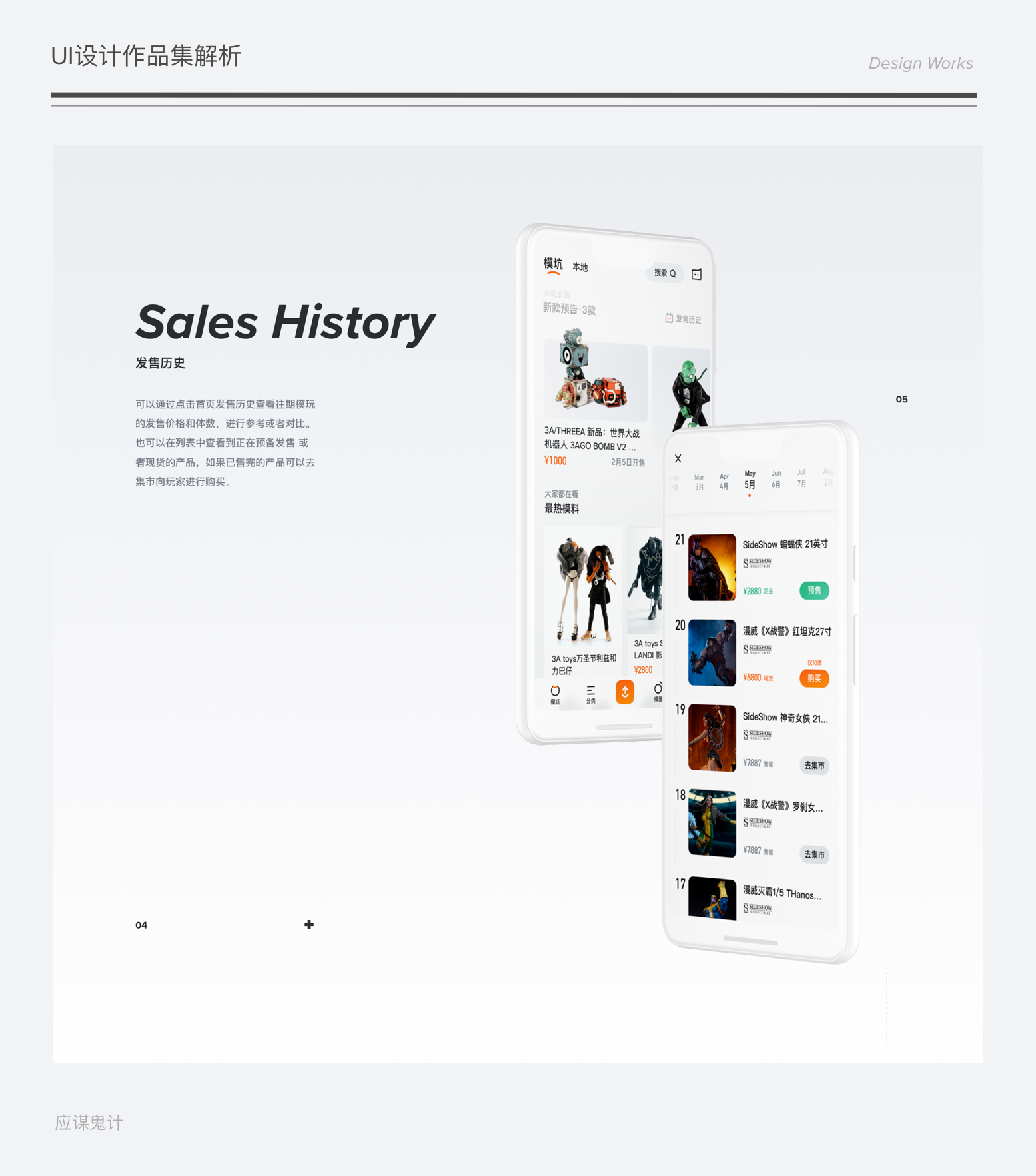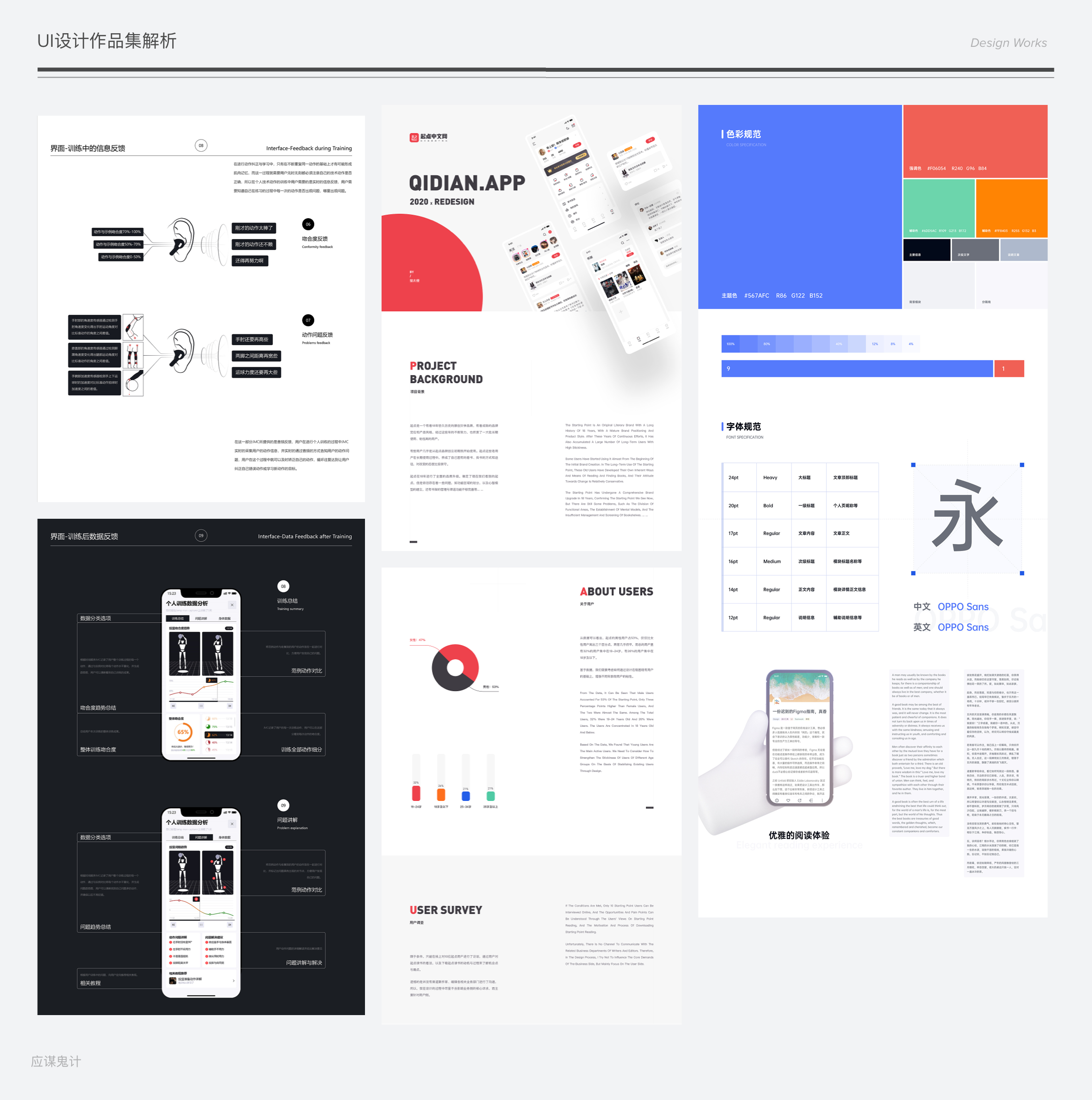 還有一點要注意,作品集並非工作項目的陳列集,不要將所有工作的內容和流程都一股腦兒搬運道作品集中,很多同學會把圖標、標註甚至草稿都放進去,破壞了作品集整體的美觀性,一定要記住,UI設計作品集設計感是最重要的,文字、分析是其次。