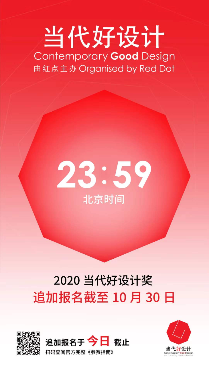 2020年7月10日,當代好設計獎正式啟動新一年度的全球徵件,申報時間將持續至10月30日,截稿正式進入倒計時,歡迎大家踴躍投稿參賽。更多賽事詳情點擊@2020當代好設計官網查詢。