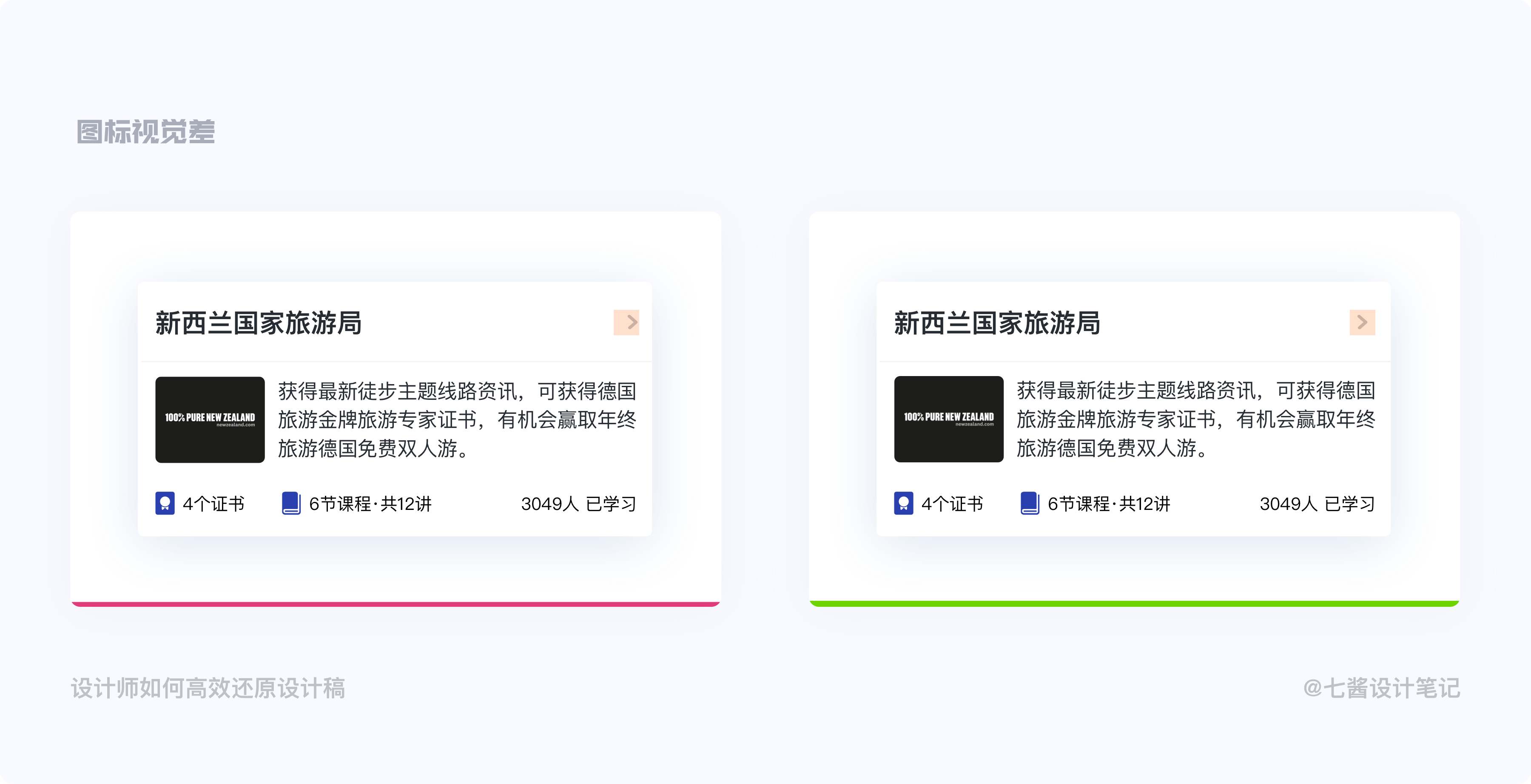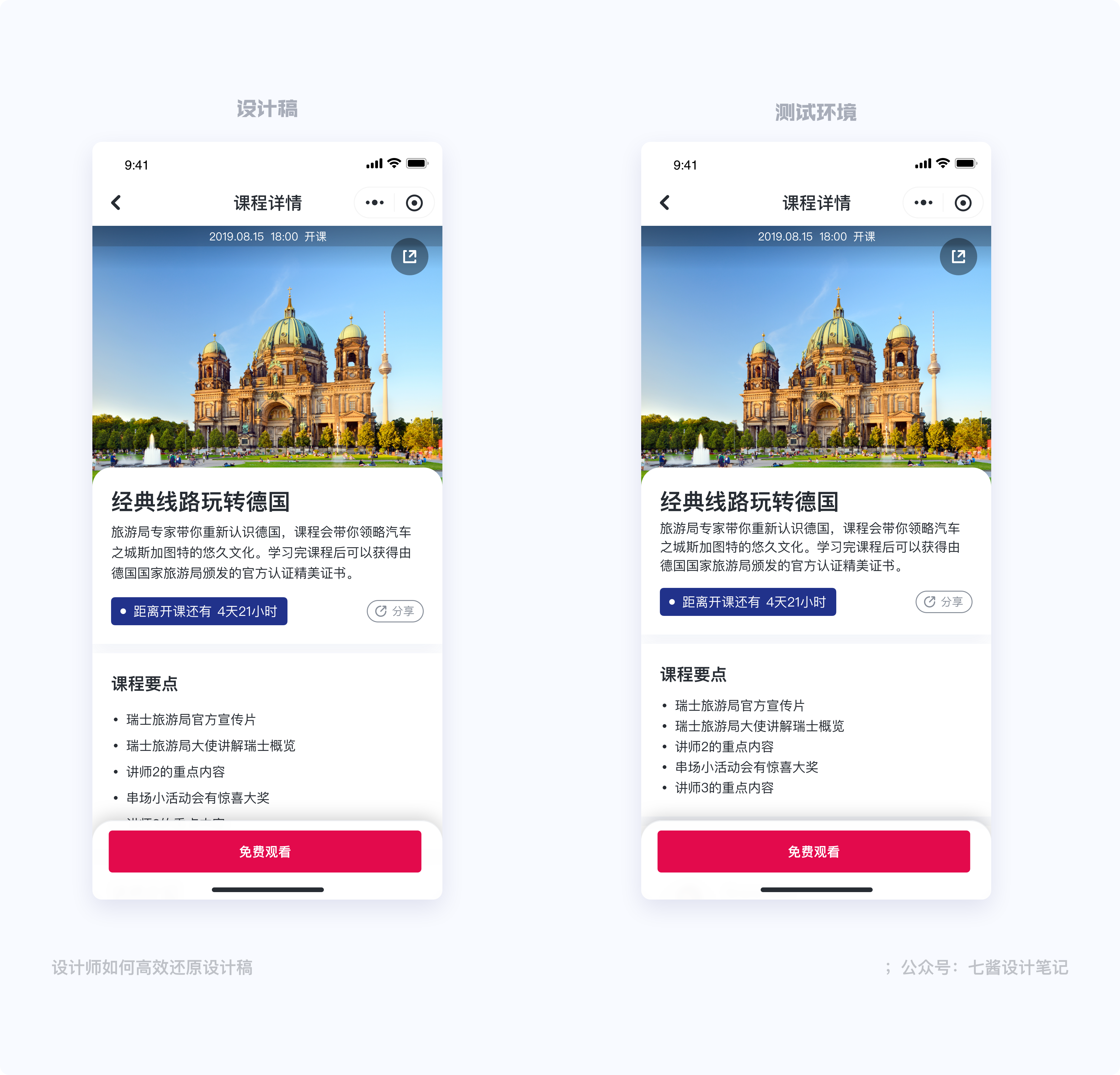 在我走查的經驗多了以後,發現最容易造成落地頁面與設計稿視覺差異的,其實就是顏色與間距還有圖標的視覺錯覺。不要小看這兩個細節元素,把控不好它們會讓落地頁面效果大打折扣。所以在進行頁面還原的可以著重對比一下幾點: