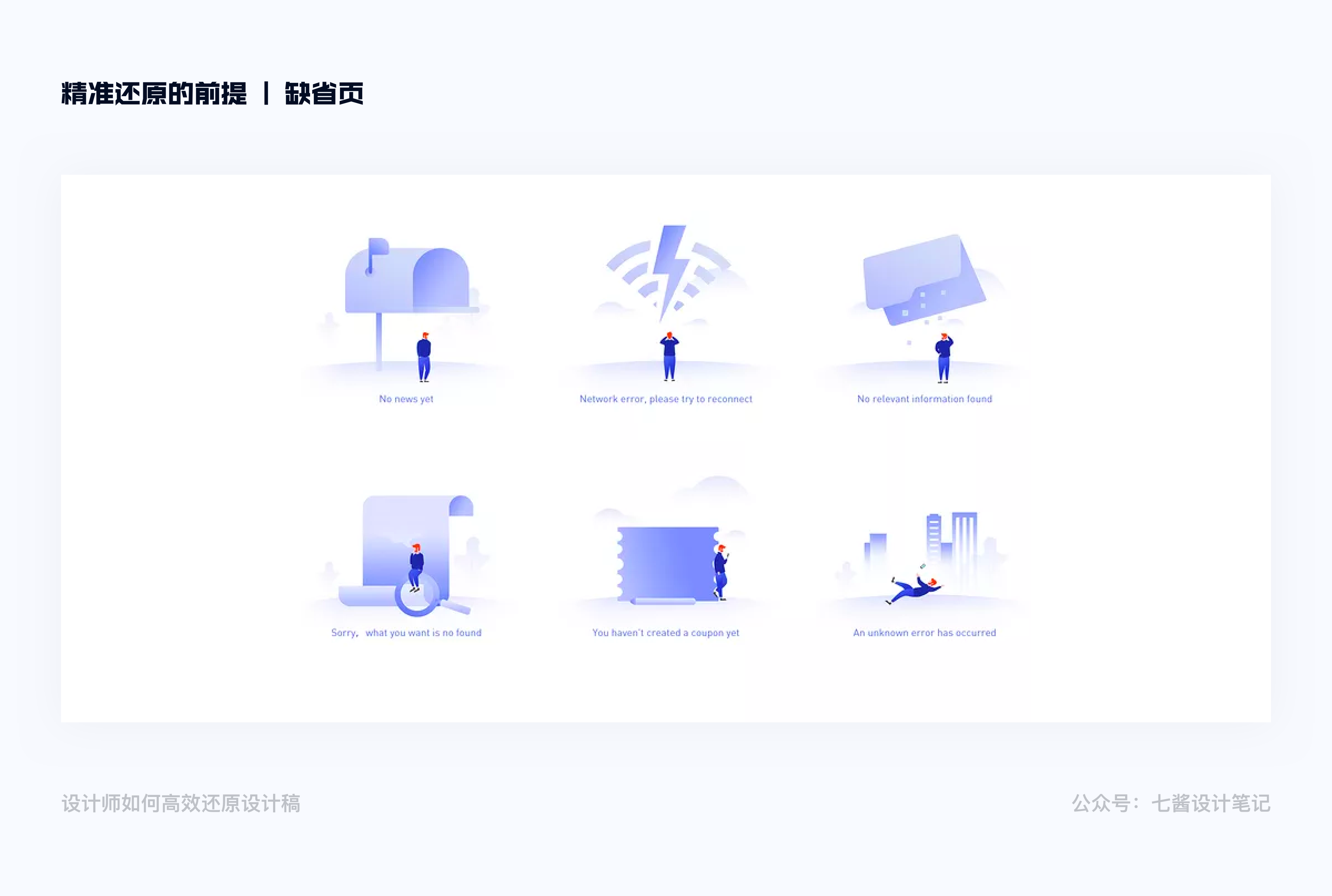 服務器異常狀況較少出現,時間也較短,通常不提示具體原因,設計處理方式為在新頁面展示缺省頁,文案+插畫的形式給予用戶提示及重試引導。