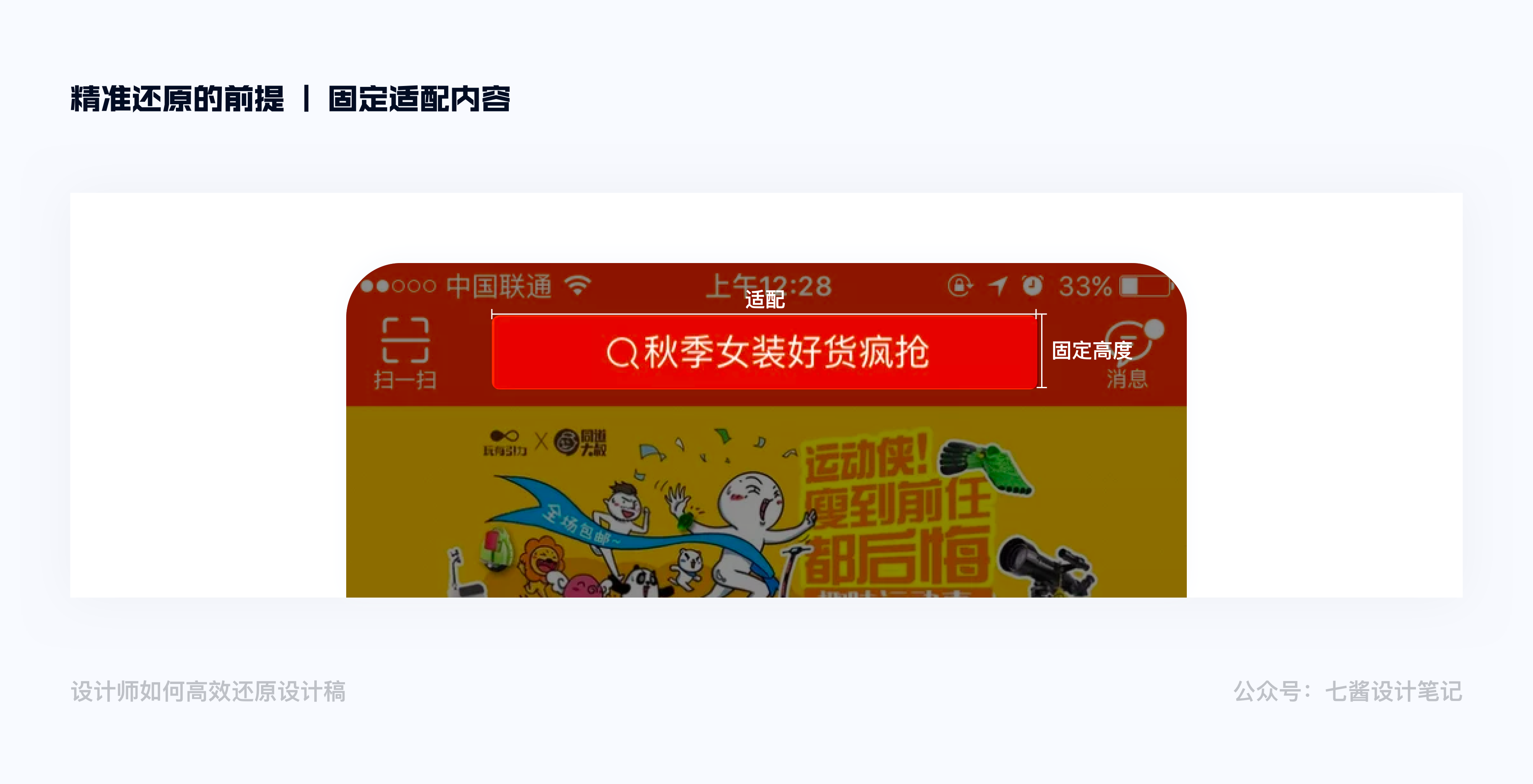 手機適配的時候很多設計師會遇到一個問題,就是在750*1335的屏幕上做的設計圖,但是適配到640*1136的屏幕上就有元素放不下。所以設計師在出圖時需要用動態的眼光去考慮問題。