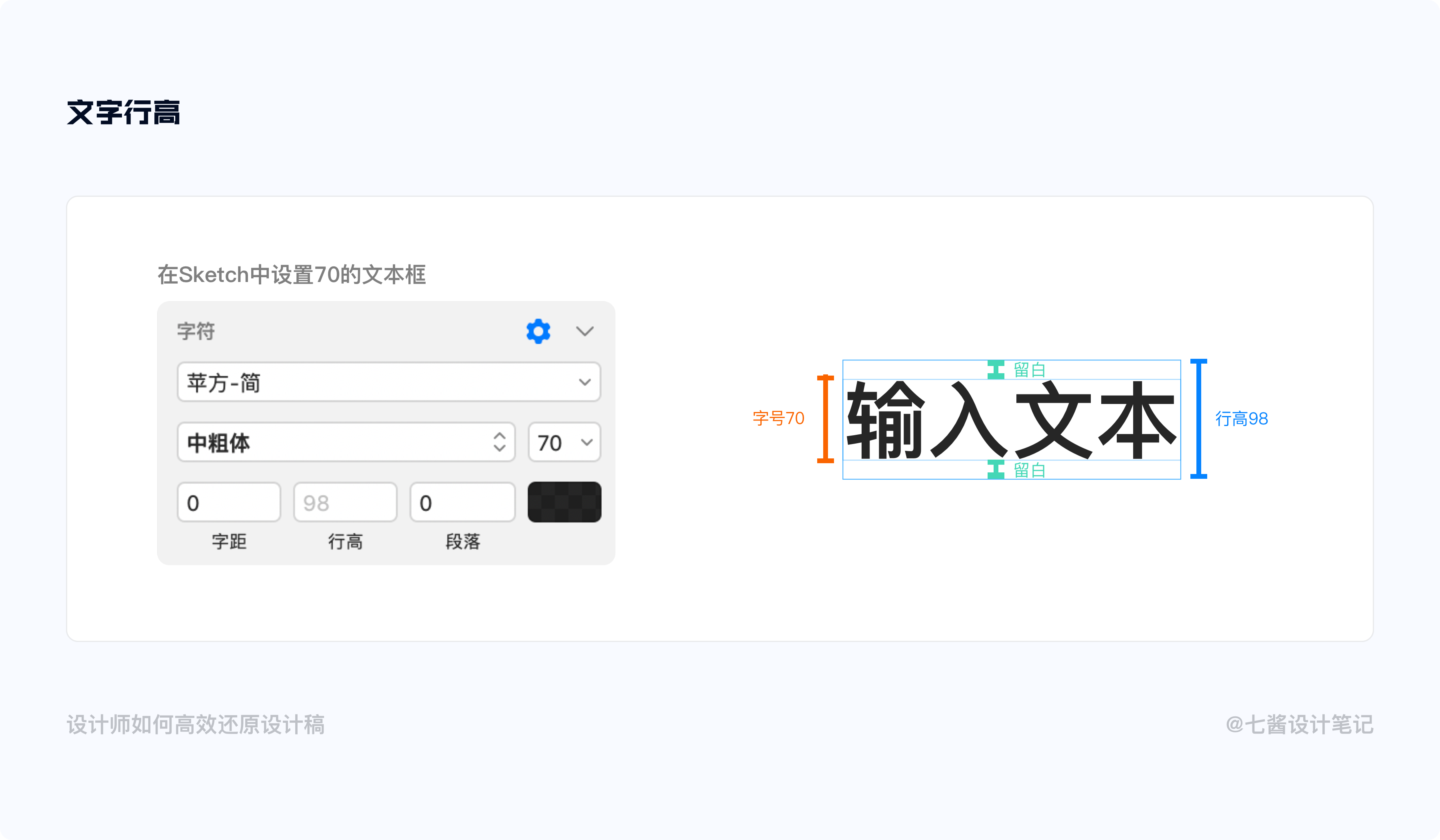 我以Sketch 為例。當我們設置了一個70px的文本,Sketch 會默認給我們設置文本為98px行高。文本的上下會包含一定的空白像素。