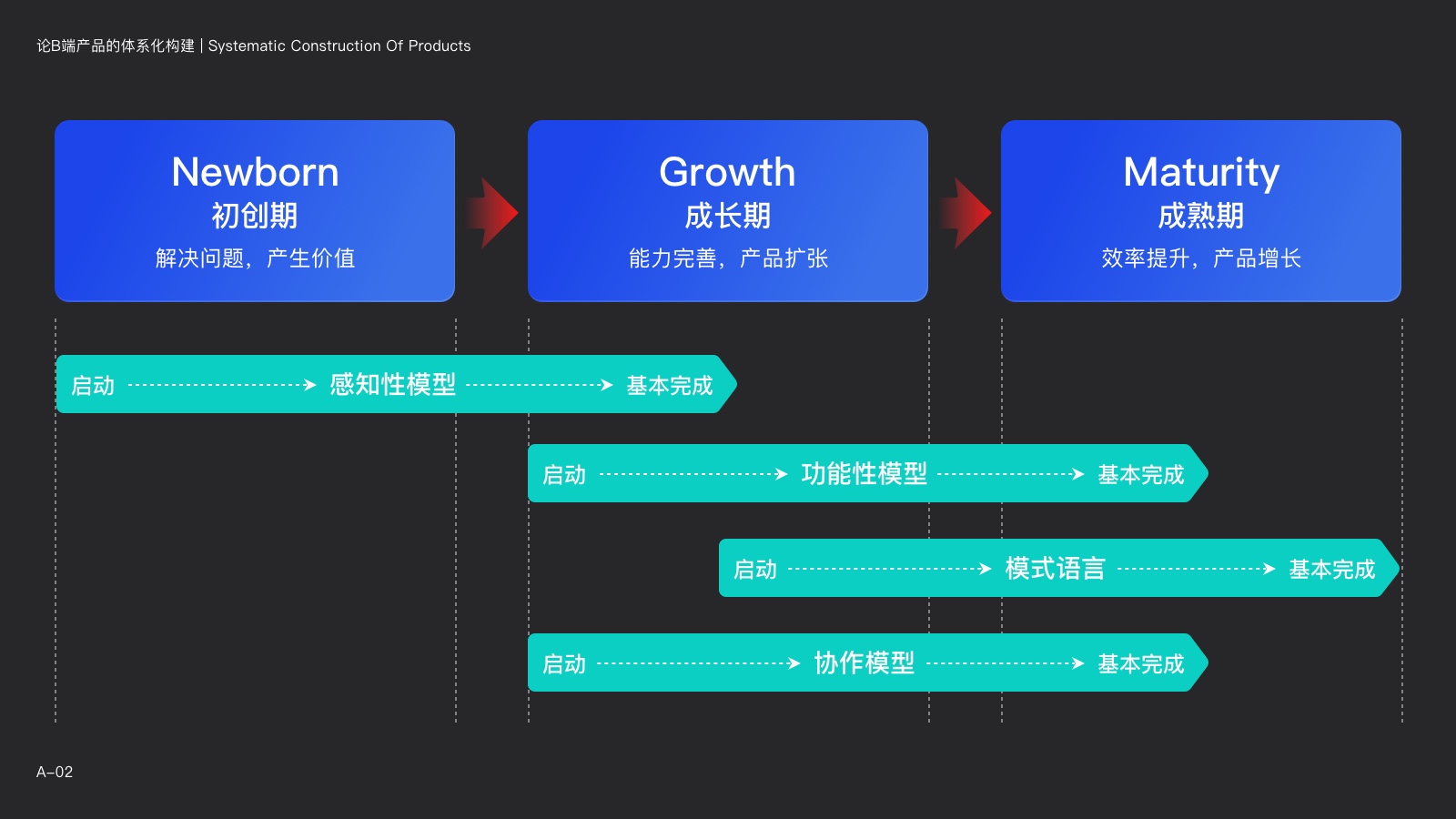 同時,當協作模型在一個產品中運轉成熟後,我們可以將這種協作方式快速復製到新的團隊中。之後,隨著新產品逐漸進入成長期,我們可以同樣按照上文所講的方式為產品構建整體的框架規範(模式語言),並應用相同的快速搭建系統等等。