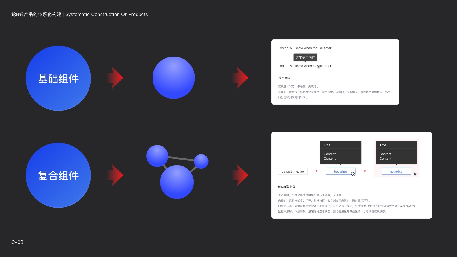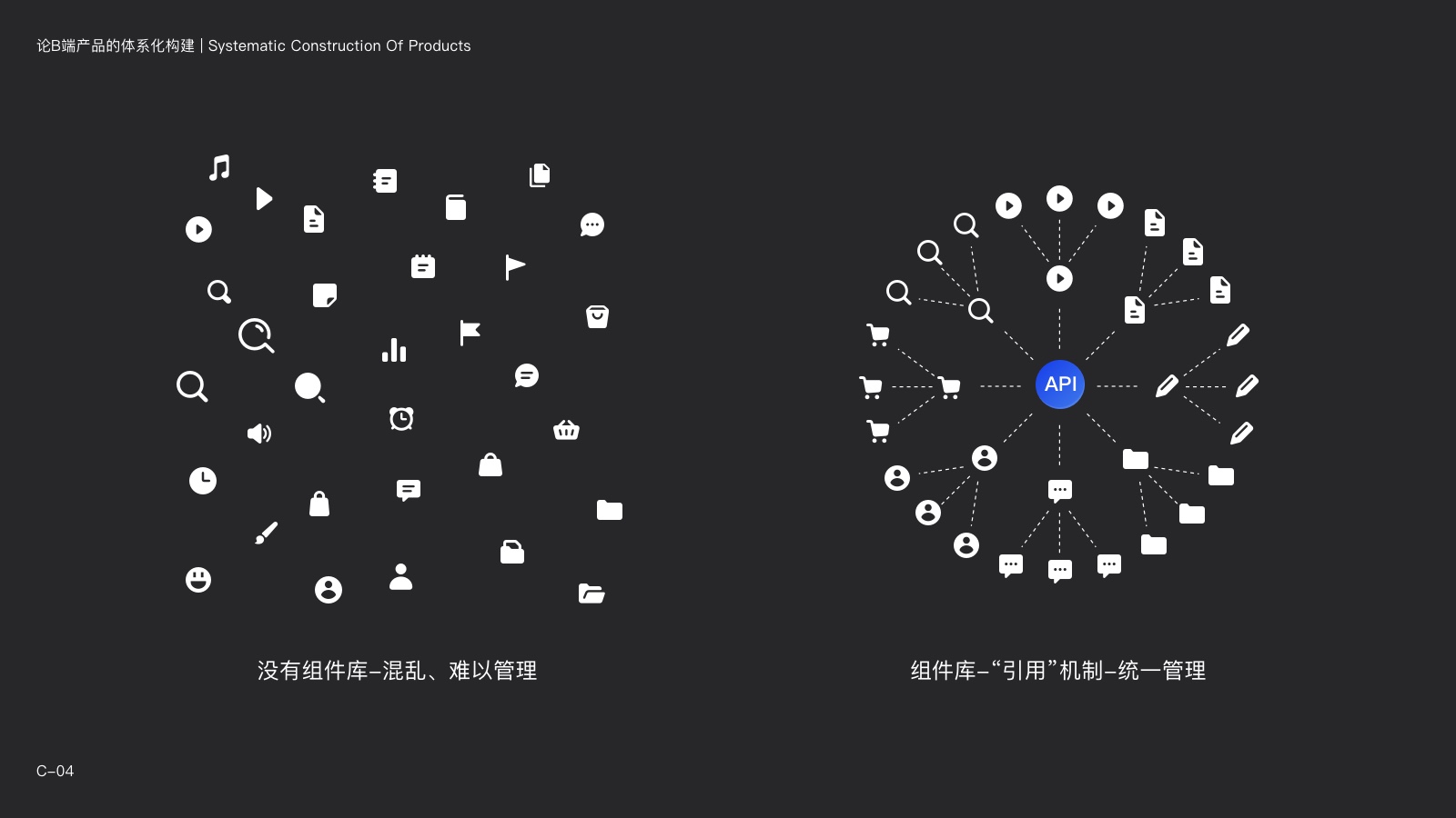 一方面,組件本身的標準需要符合不同模塊的需求。另一方面,不同模塊的產品框架、規則需要有一個統一的標準,才能避免產品“混亂度”的不斷增加。