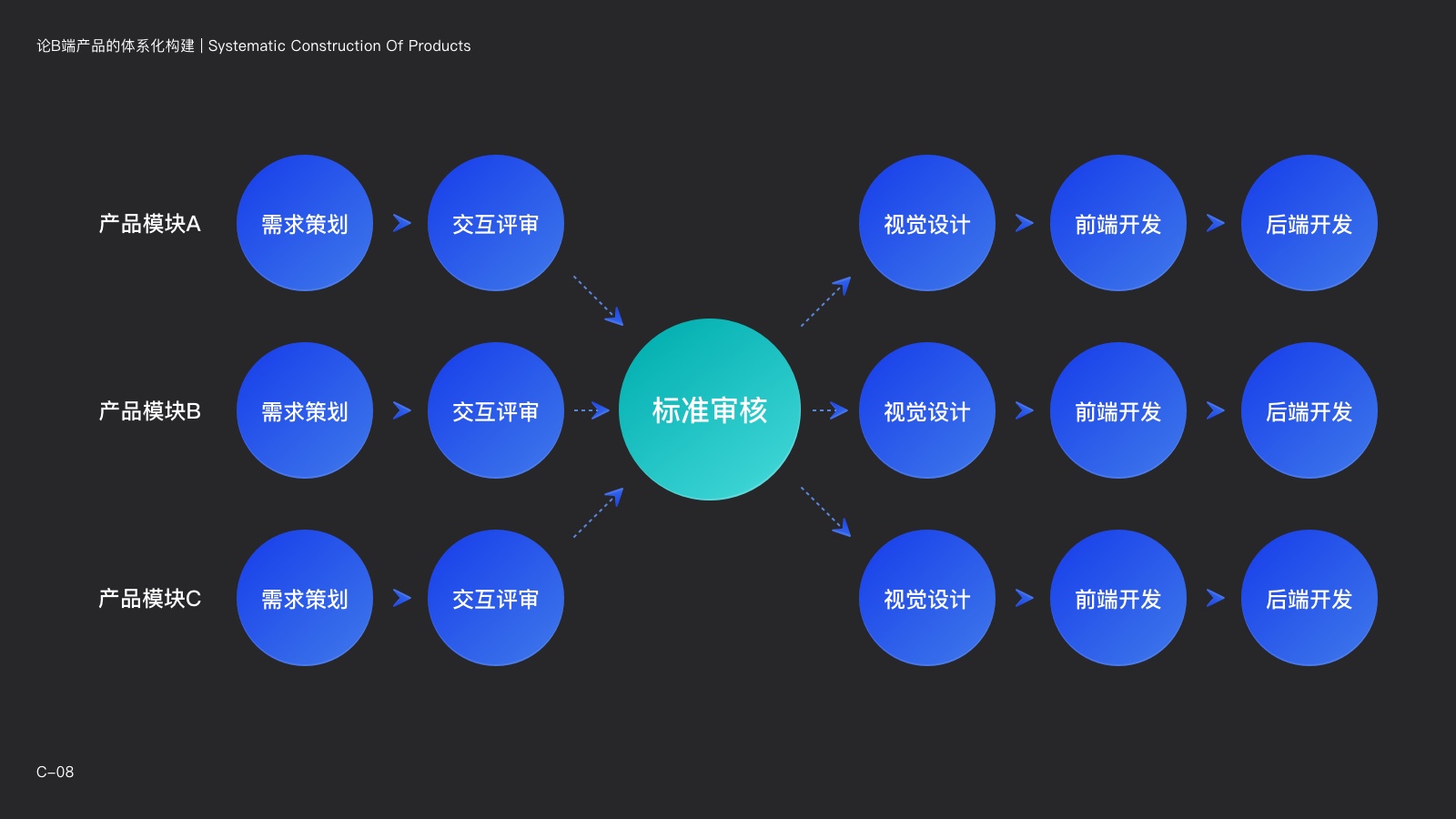 產品架構設計師的出現,將會以[產品+設計師+前端架構師]的角色,統籌所有的產品線,制定[產品-UI-前端]一體式的整體架構,讓整個產品的標準完美兼容所有的模塊,使整體架構更精簡、更可控。