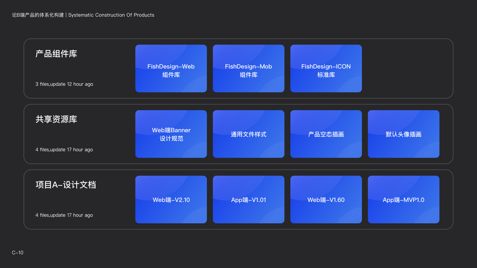 在產品的成長期,隨著設計團隊的人數的增加,設計團隊的中台化也是需要考慮的事情。特別是隨著Figma以及其他雲端協作軟件的出現,也使團隊設計文檔管理與協作的方式更簡單了。