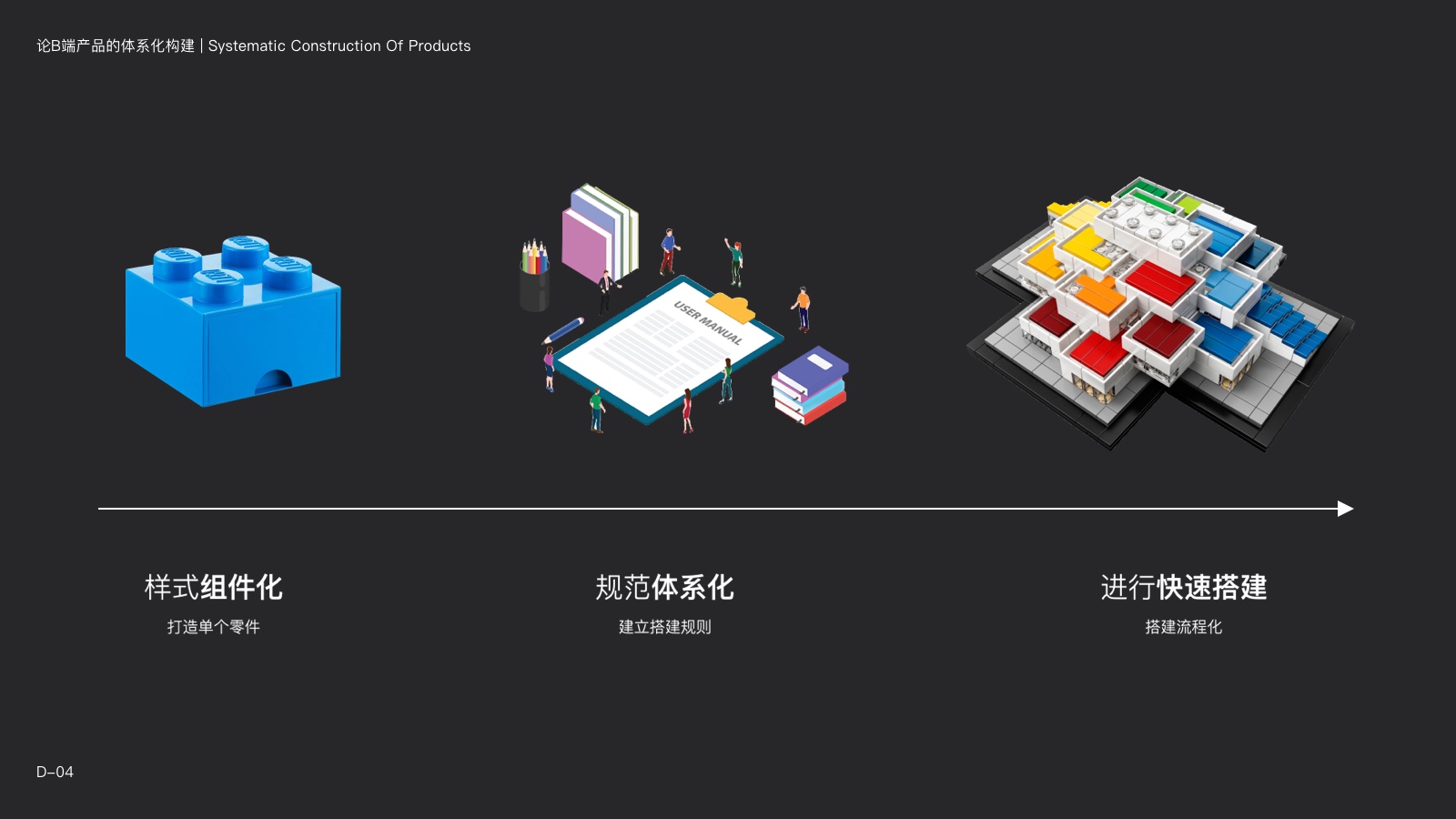 整個搭建過程類似於樂高積木,通過單個組件進行框架搭建,然後遵循頁面的結構進行組件填充,之後形成產品的功能模塊,再更進一步,將多個功能模塊再搭建成業務系統。