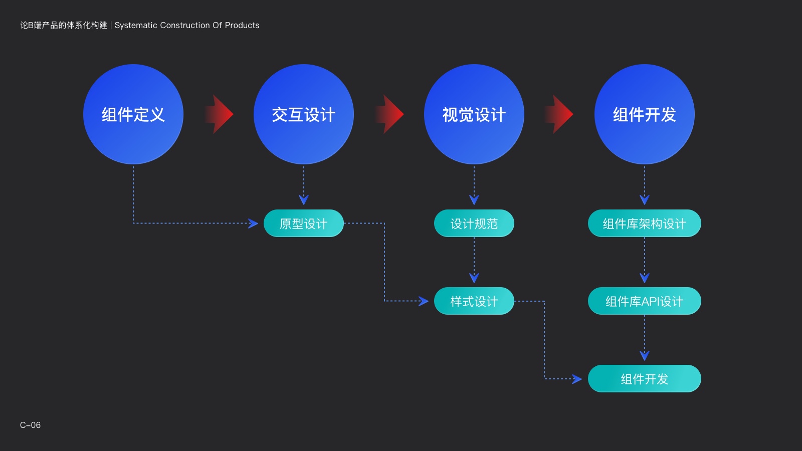 通過“樣式組件化”+“規範體系化”,再配合逐步完善的協作模型,整個產品團隊最終將形成了完善的設計體系。