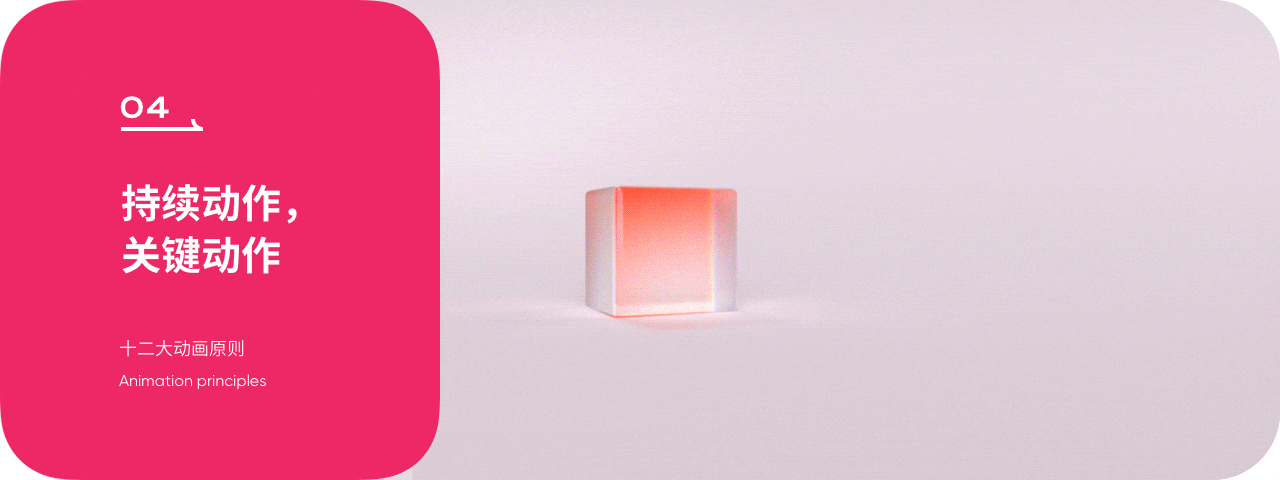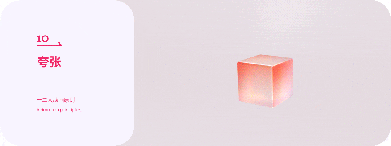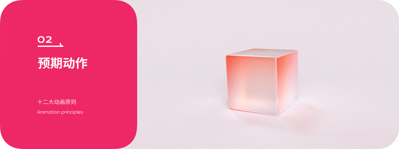 預期動作可告知觀者物體運動即將發生,增強觀者的場景代入感,使運動更加生動真實。如果我們去除前期的預備過程物體所呈現的運動感知像是突然被前方磁鐵所吸引。