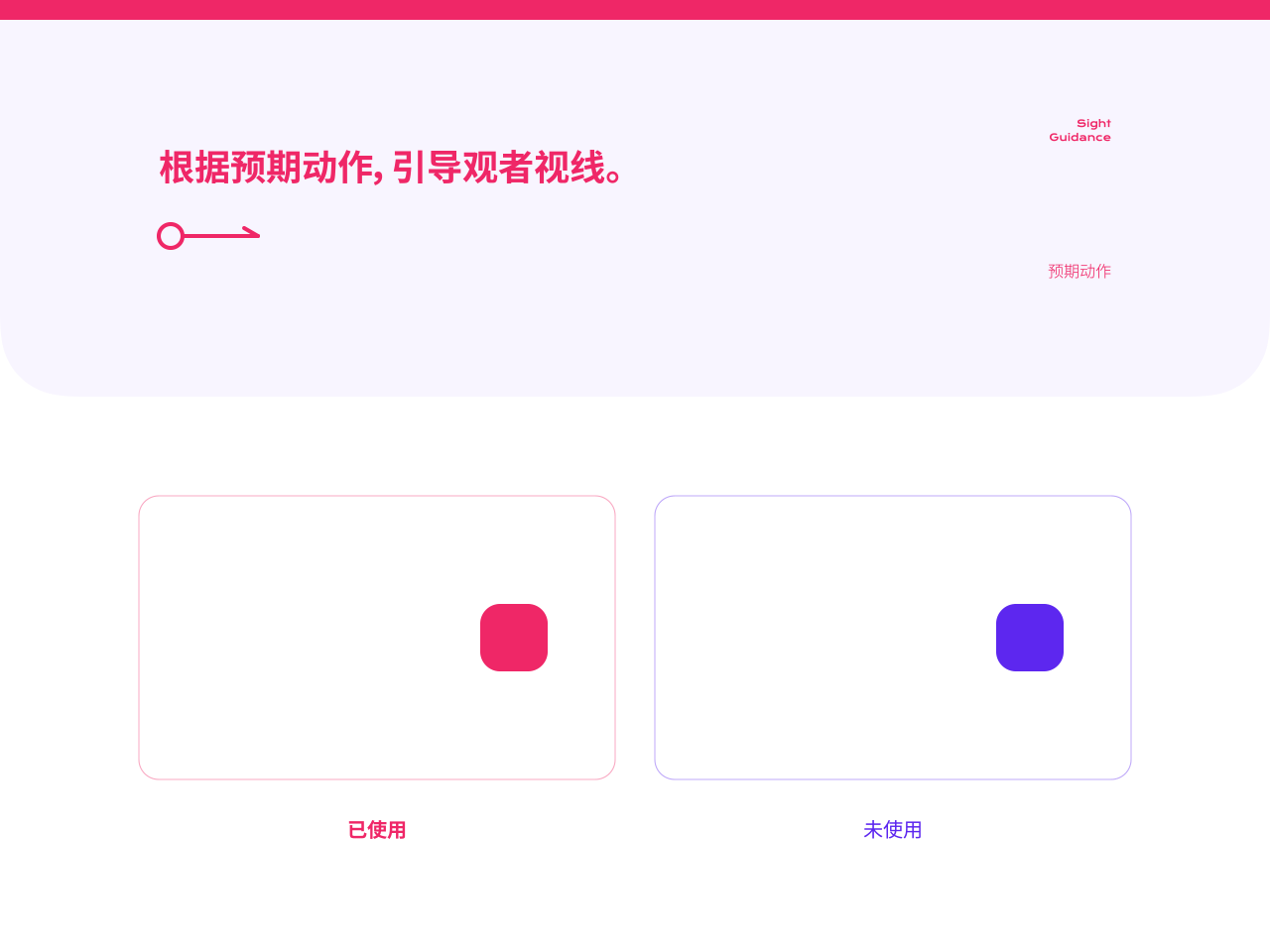 預期動作可對觀者視線進行引導,設計師可以根據預期動作所引導的方向來銜接鏡頭/場景的轉場。反之預期動作也可以用來欺騙觀眾,當用戶預期與畫面不符時也可增加動畫舞台的趣味性。