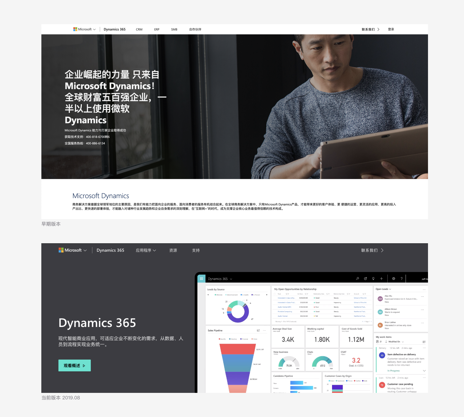 最新版本的文案明顯去掉了面向中大型企業的定位傾向,甚至可以推測Dynamics 365產品本身的定位也發生了一定變化。