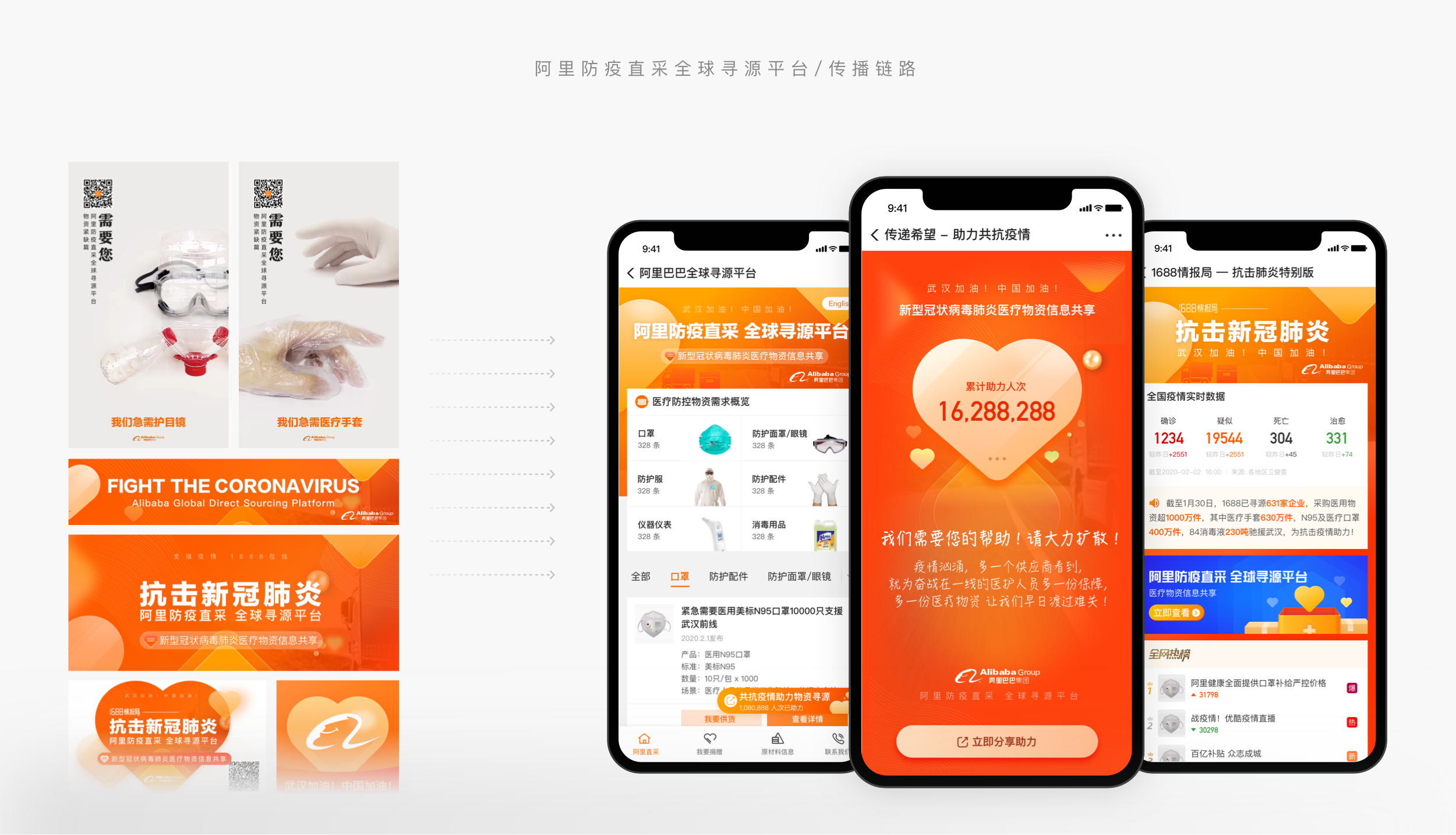 在阿里防疫全球尋源項目中,設計師通過體系化的設計保障物資供需鏈路高效對接,並發起創意傳播,應用專業能力呼籲相關企業加入到抗擊新型冠狀病毒疫情的行列。設計師們雖然不能在前線抗擊肺炎,但通過阿里全球尋源項目,在自己的崗位為全球防疫儘自己的一份力量及愛心。