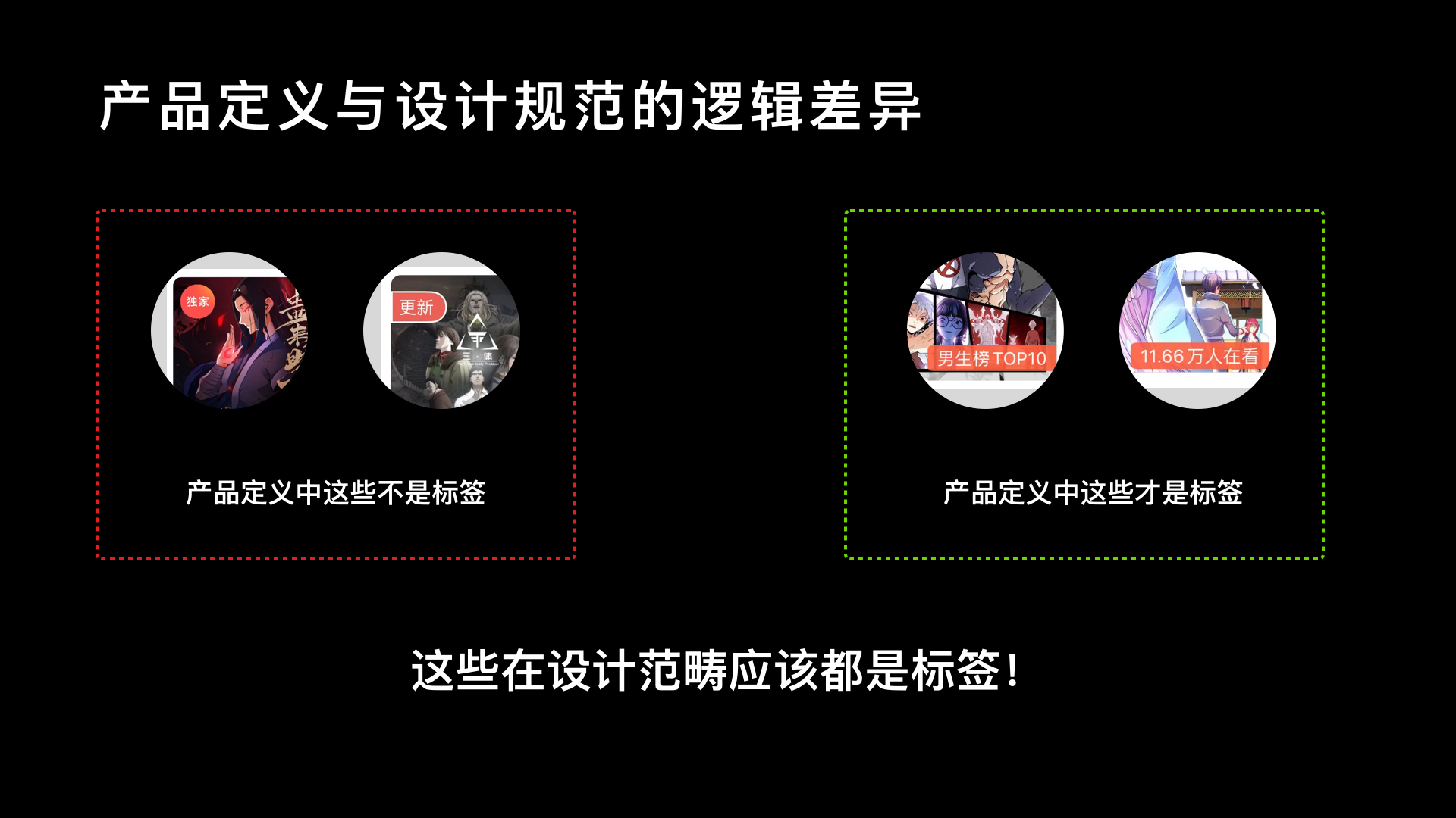 從找內容到消費內容過程中,經常使用標籤來幫助用戶快速做出選擇;但產品與設計都有不同的標籤邏輯,會出現不相同的底層梳理思路;產品經常會以開發邏輯判斷模塊屬性,而交互設計是以體驗設計角度出發。例如標籤存在已開發成熟後台配置系統,在此邏輯以外的標籤樣式都不屬於標籤範疇內,很容易出現這類標籤有多種異形設計樣式的情況。