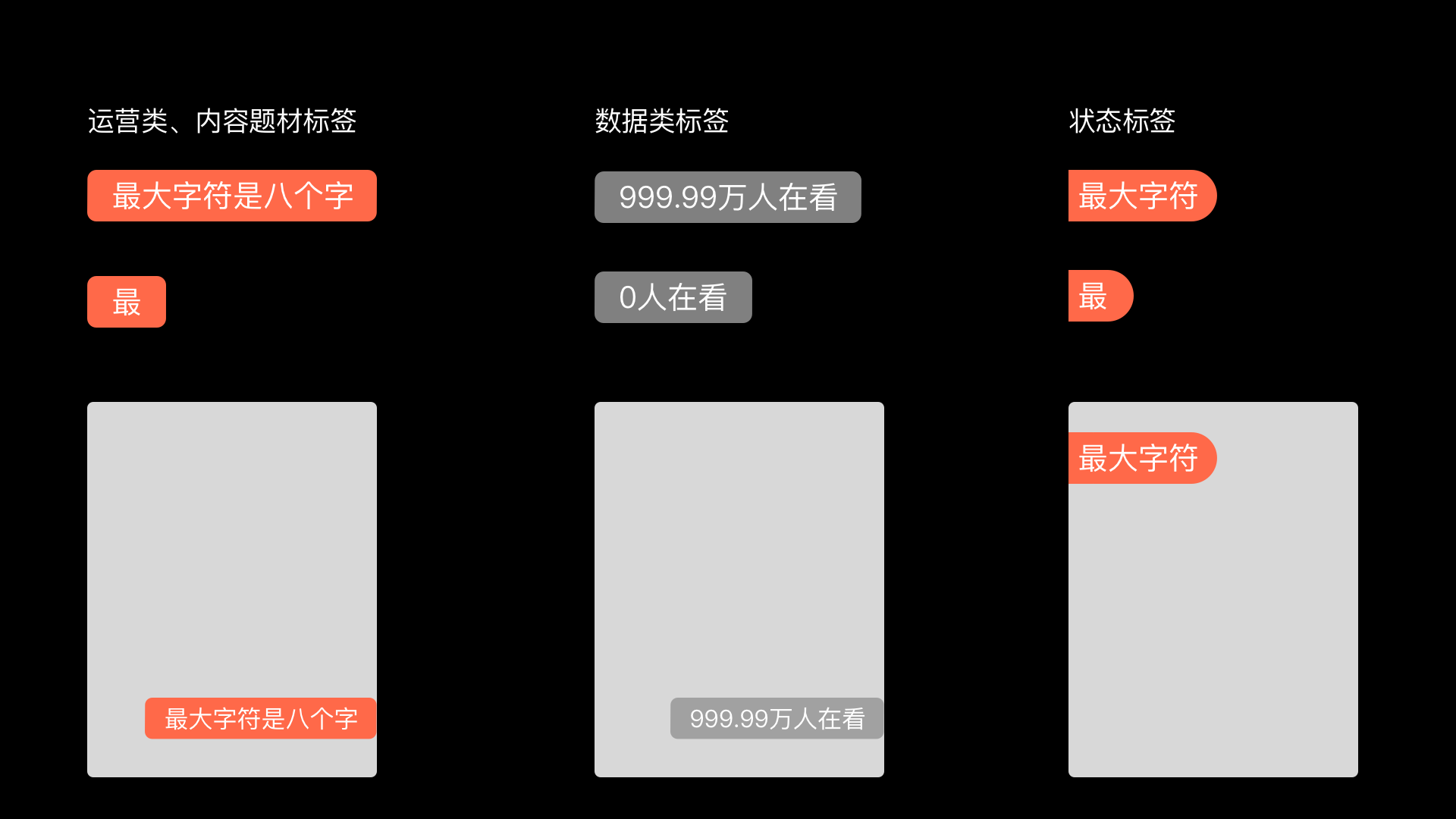 設計師就必須在站在宏觀視角去把控所有標籤需求的定義。從而在設計層面解決“不同需求出現不同形狀標籤”的雜亂情況。按照交互規範的搭建思路來輸出一套可複用的規範組件庫。
