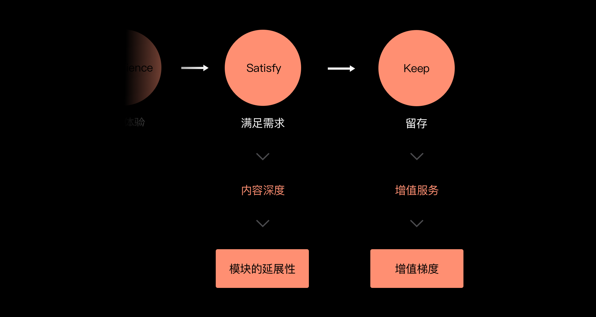 根據每個轉化的關鍵節點的各有不同的體驗關鍵詞,