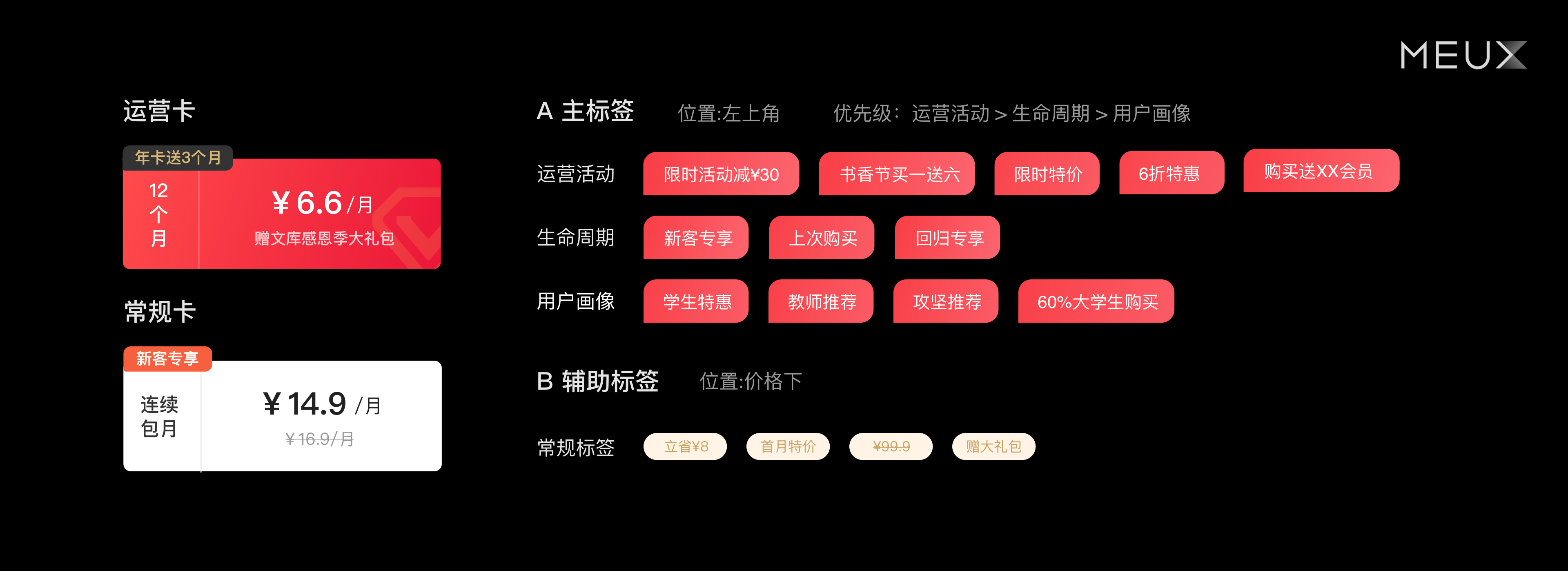 在套餐商品模塊,對商品卡片樣式、信息展現規則、標籤類別、展現數量、位置等製定了規範,避免過度運營造成信息冗餘,同時兼具擴展靈活性。