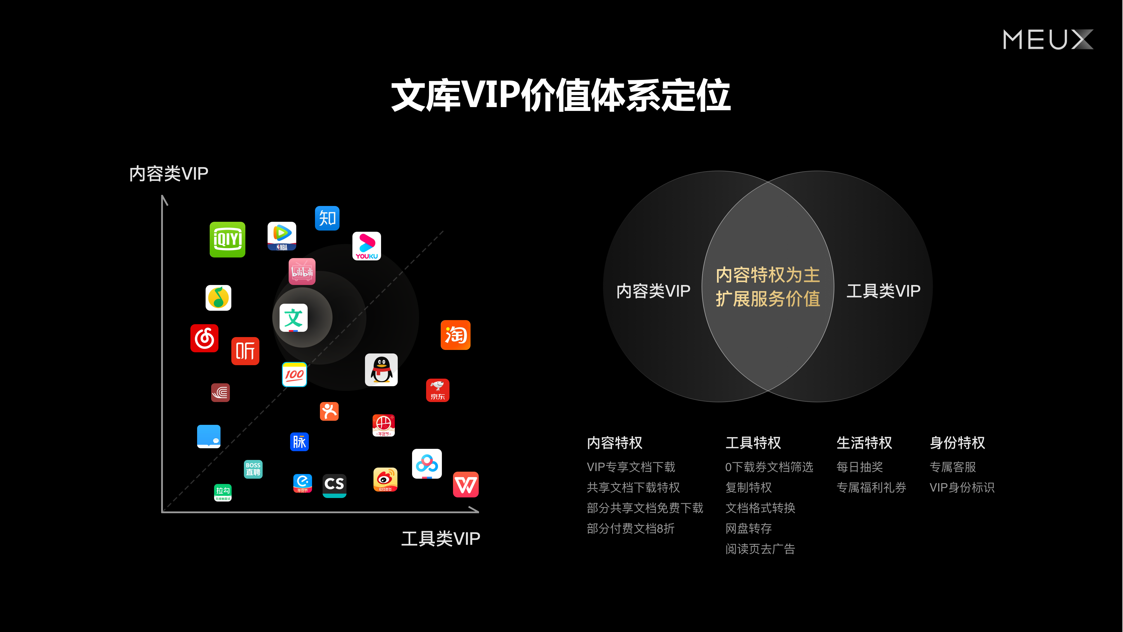 本項目將商業和用戶兩個視角相連接,由宏觀至微觀挖掘文庫會員體系的價值可增長點,並通過設計手段實現文庫會員體驗框架升級,促進文庫會員業務商業價值及用戶價值雙向提升。