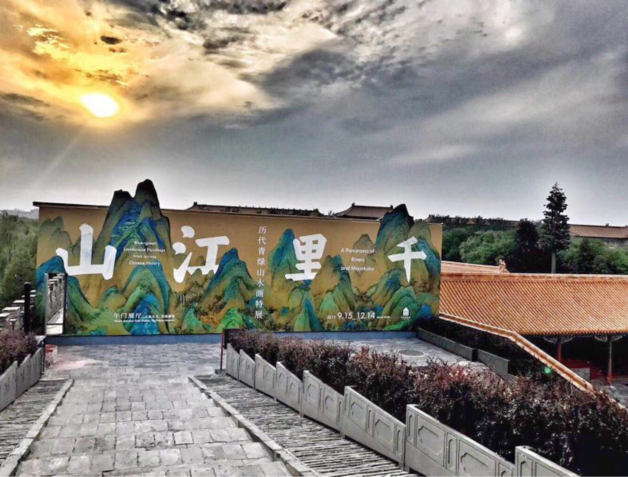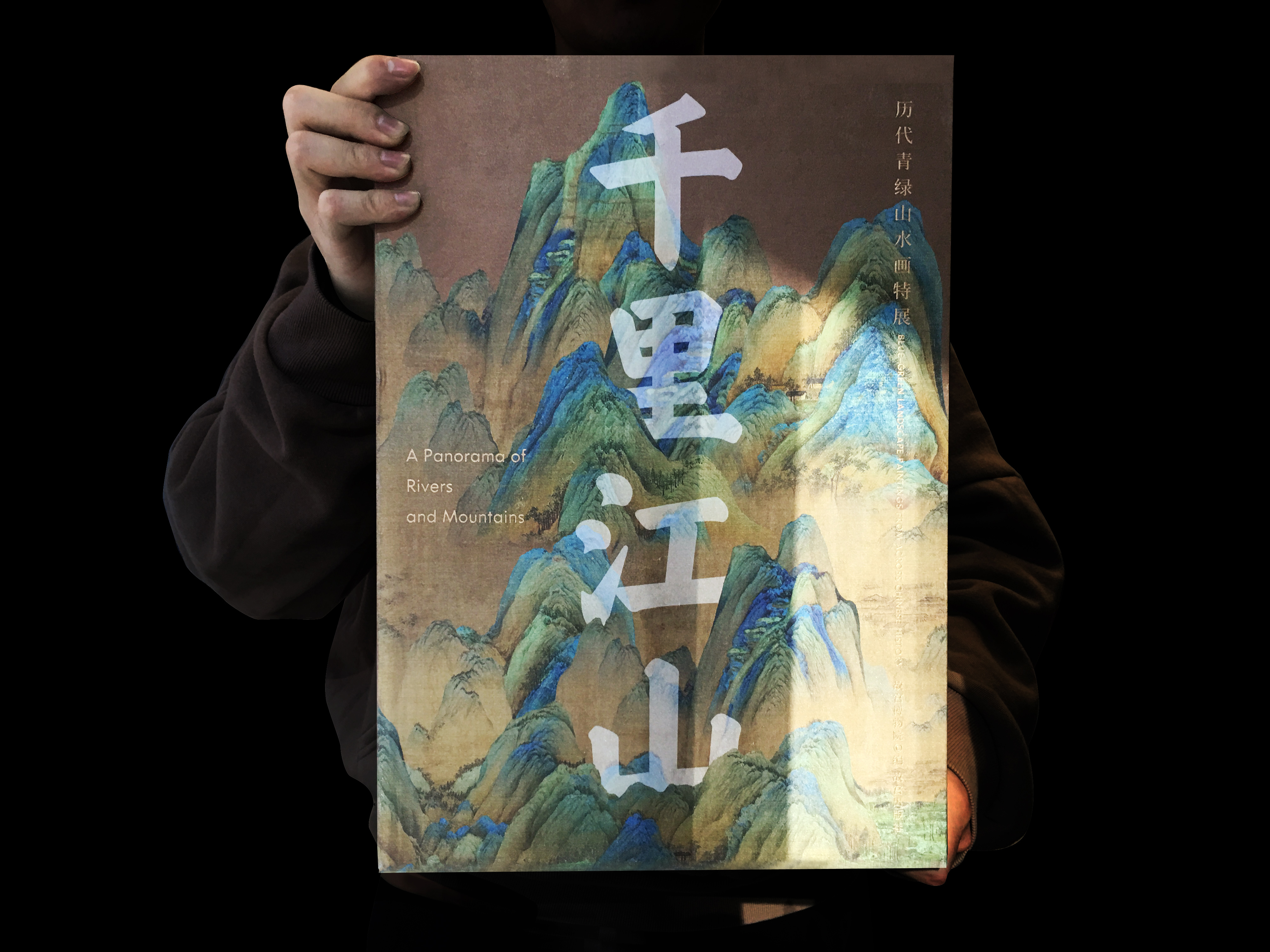 整體佈展設計烘托“如臨其境,如在畫中”的意境,主視覺畫面藏於山峰間的漢字,以深沉的力量引出青綠山水的壯美藝術。