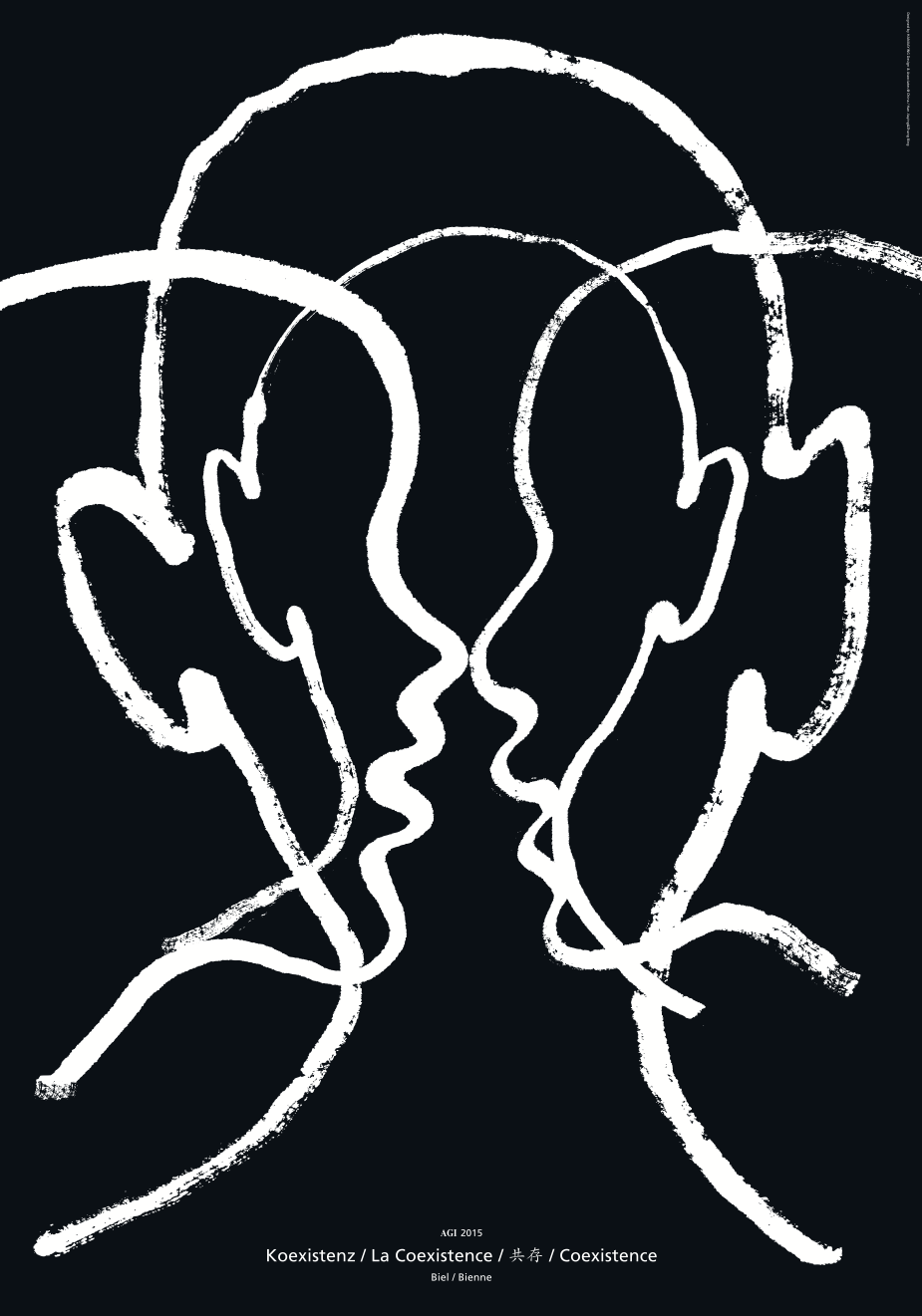 在瑞士比爾舉辦的AGI大會以“共存”為主題。這一主題與大會的舉辦城市也有很大關聯性。比爾是同時使用德語和法語的城市,也是聚集多個民族、多個國籍人士、多個人種的共住地。海報以此作為創作的出發點,通過對不同特徵的人,不同角度的詮釋,表現這座城市的特殊包容性,投射人們對和平共存的希望。