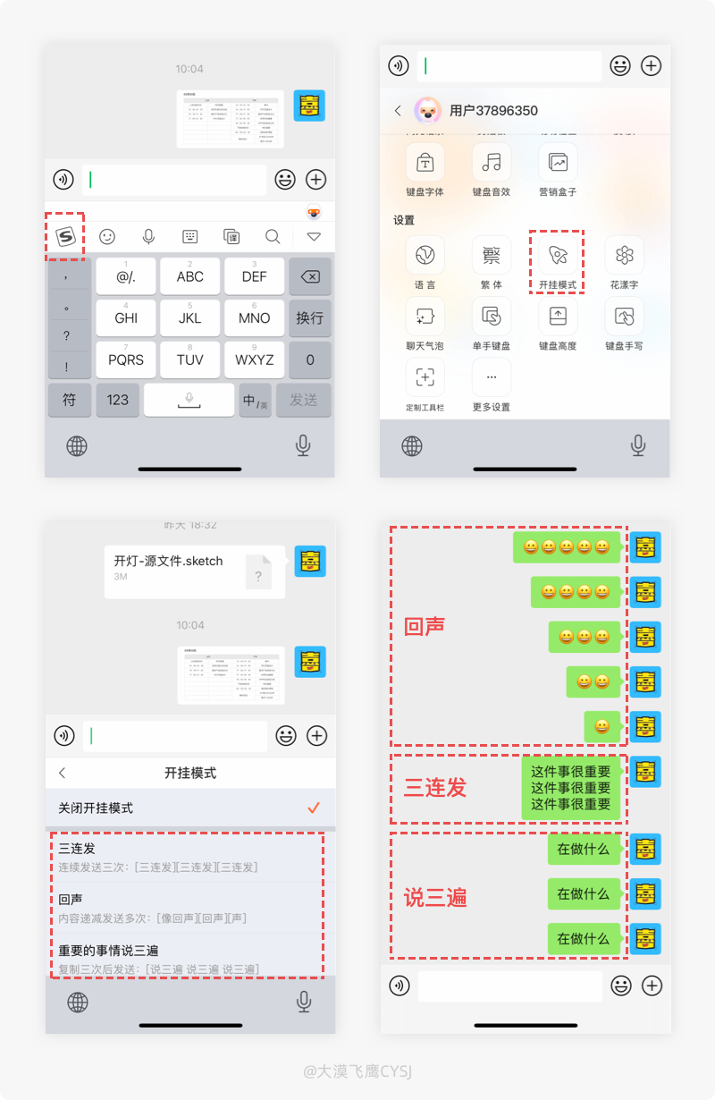 進入搜狗輸入法的設置中,可開啟開掛模式,裡面的三連發、迴聲、重要的事情說三遍分別對應不同的效果。
