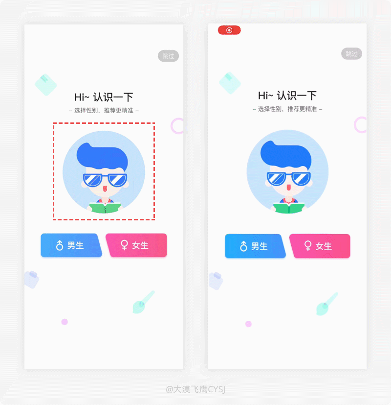 類似這種選擇且非強制性的前置頁面,很多設計師只是按部就班當做一個流程,其實要想做好並非僅僅如此,可以通過趣味化、情感化、動效等方式增強用戶去選擇的慾望,以提高操作機率,用戶一旦選擇,進入應用之後所看的內容定然更符合自身的需求,也能提高用戶的滿意度,其滿意度的高低能決定用戶的去留及轉化,所以應用中,用戶的前置選擇對產品的重要性可想而知。