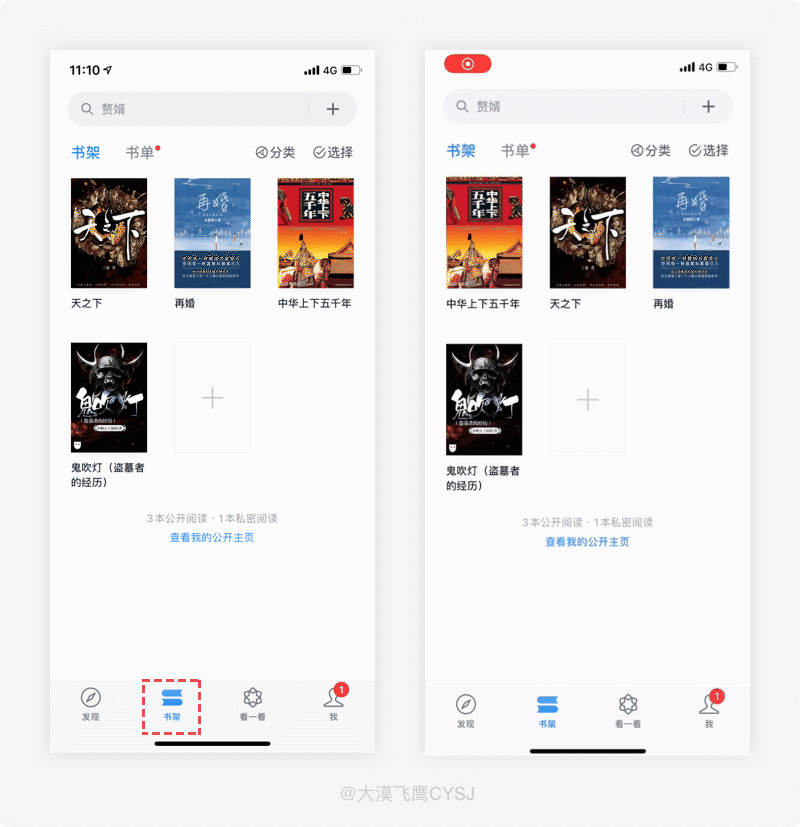 在微信讀書的書架頁面,點擊書籍以及書本翻頁,都使模擬了現實生活中較為自然且真實的從書架拿書、及各個角度翻頁的效果。