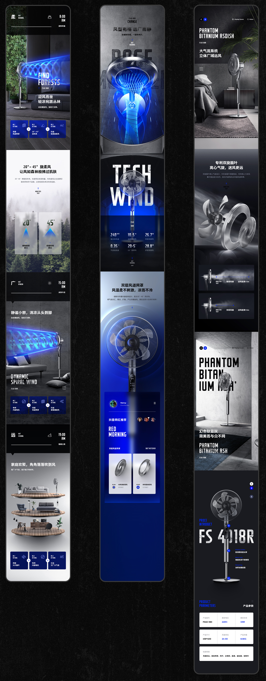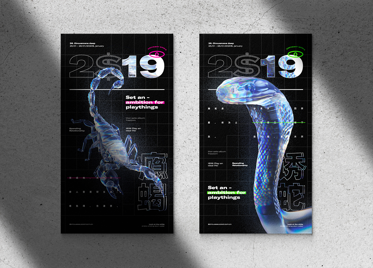 circusmans:個人自驅力還行,有幾年時間基本上週末都是在做練習,強迫自己4個週末內出一個完整的作品,周而復始。從單屏合成版式,到詳情頁,再到完整網頁,現在有時間也會玩玩C4D。剛入門的時候,練習主要是以臨摹國內外大神為主,學會站在巨人的肩膀上,橫向發展多掌握一些技能。然後經過學習,慢慢形成舉一反三,根據一個好的作品,類推出不同視覺呈現的作品,從而產生量變,當中可以把作品分享到站酷或者朋友中,從而獲得更多交流。最後積累大量作品,建立起自己的設計自信,開始冷靜考慮取捨,並試圖為自己尋找可靠的定位,不斷尋求階段性突破,衝破質變前提下的壁壘。