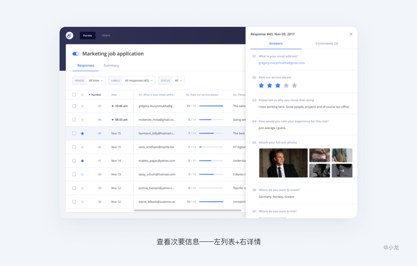 可以通過視圖切換查看更多細節,比如在“表格”和“左列表+右詳情”之間切換,或者提供“只看文本,看文本和縮略圖,只看縮略圖”幾種查看方式。相比彈窗減少了頁面層級和隔離感。單擊行鏈接將表格轉換為左側的列表項目和右側的其他詳細信息,這讓用戶能夠解析大型數據集,而且在涉及到多個項目時不會丟失位置。