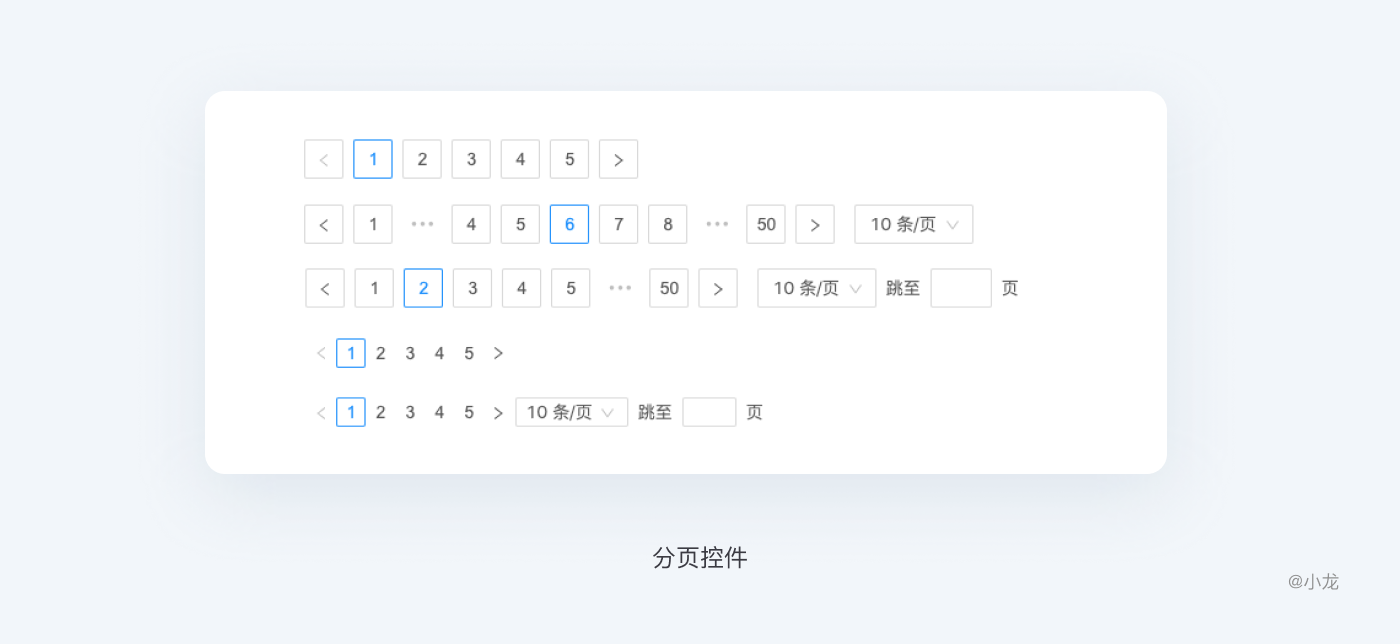 底欄最常見的元素就是分頁,分頁可以放在頭部或底部,常見的還是放到底部,分頁固定能省去用戶需要翻到頂部或底部進行操作的麻煩。分頁可分為整體頁碼平鋪式、全功能版、簡易版等,需要根據不同的場景選擇最優的設計方案,比如有的時候並不需要定點跳轉。