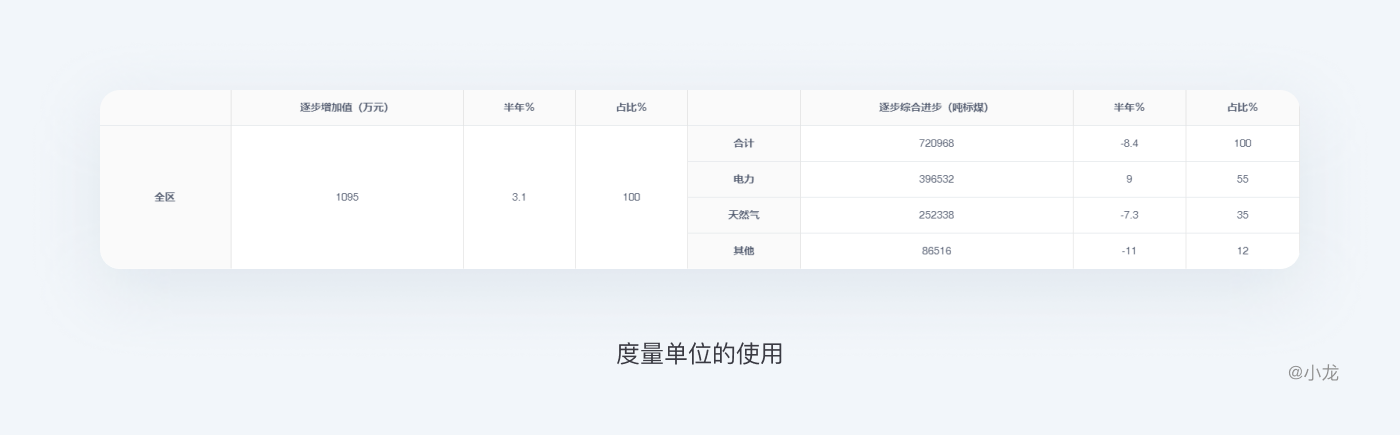 其中的關鍵區別在於數字的大小。數據的度量單位無需重複,一般在表頭標識清楚即可。