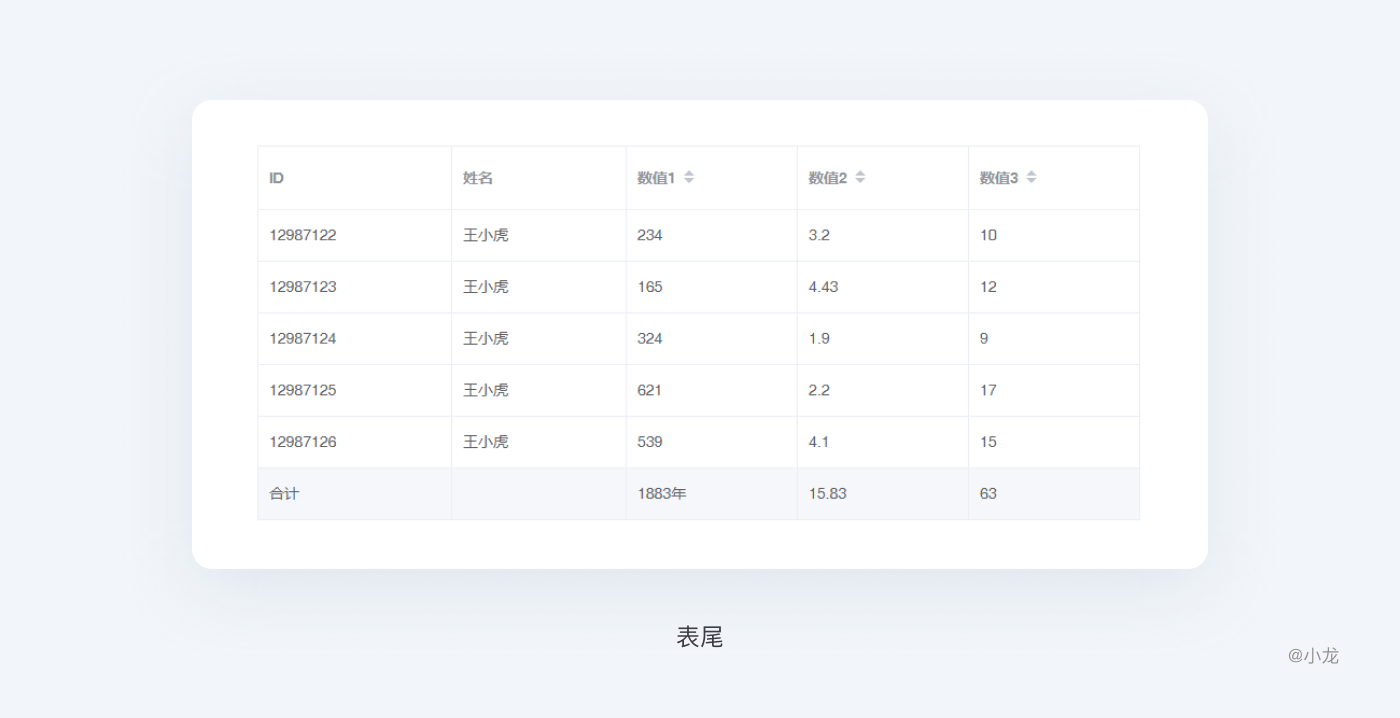 表尾一般是統計類數據,例如合計、平均數等。表尾使用頻率較少,且重要性明顯不如表頭,我就把它歸到表體這類。