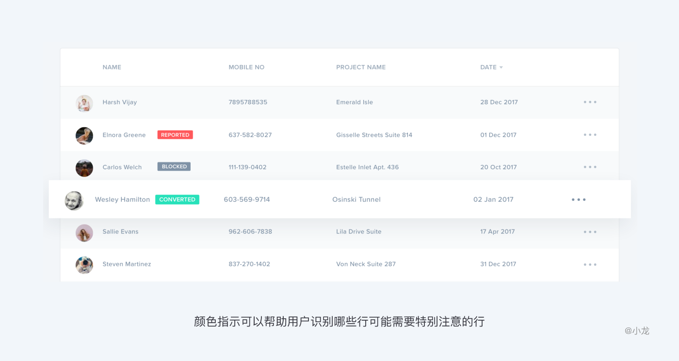 表格還可以通過顏色來指示狀態,顏色指示可以幫助用戶識別哪些行可能需要特別注意的行數據。