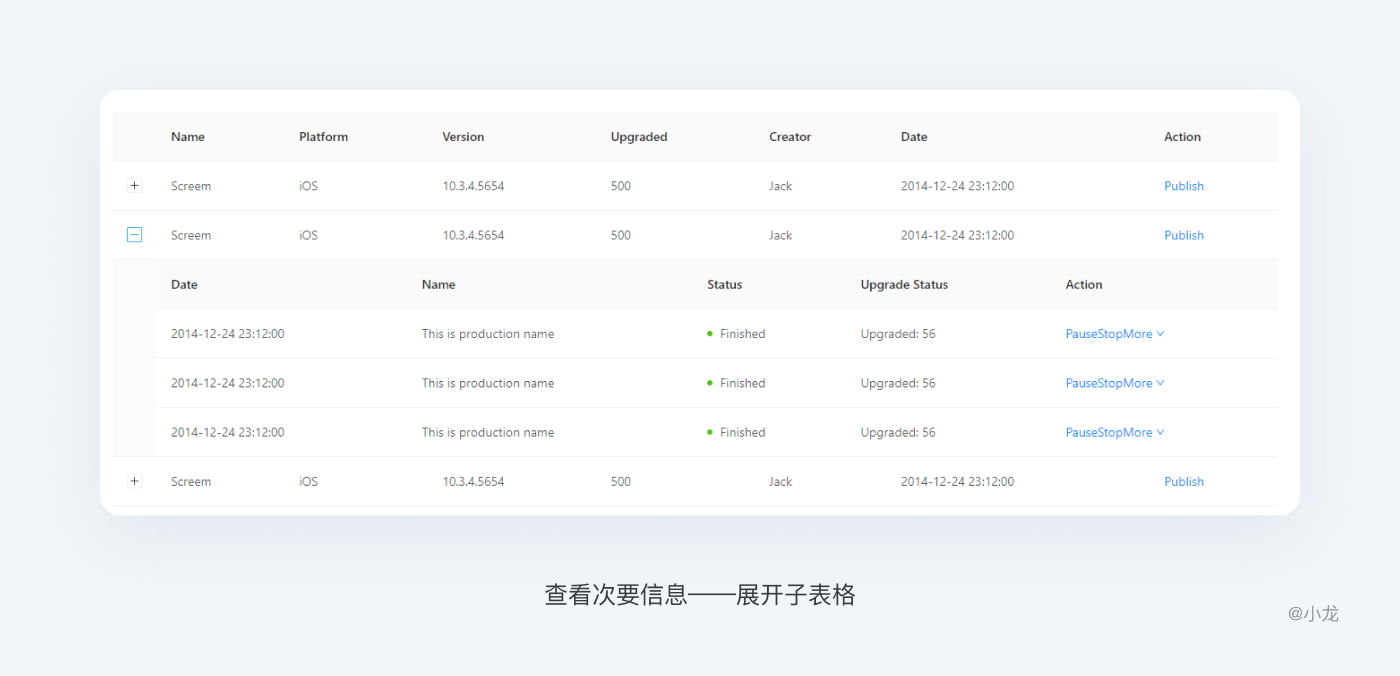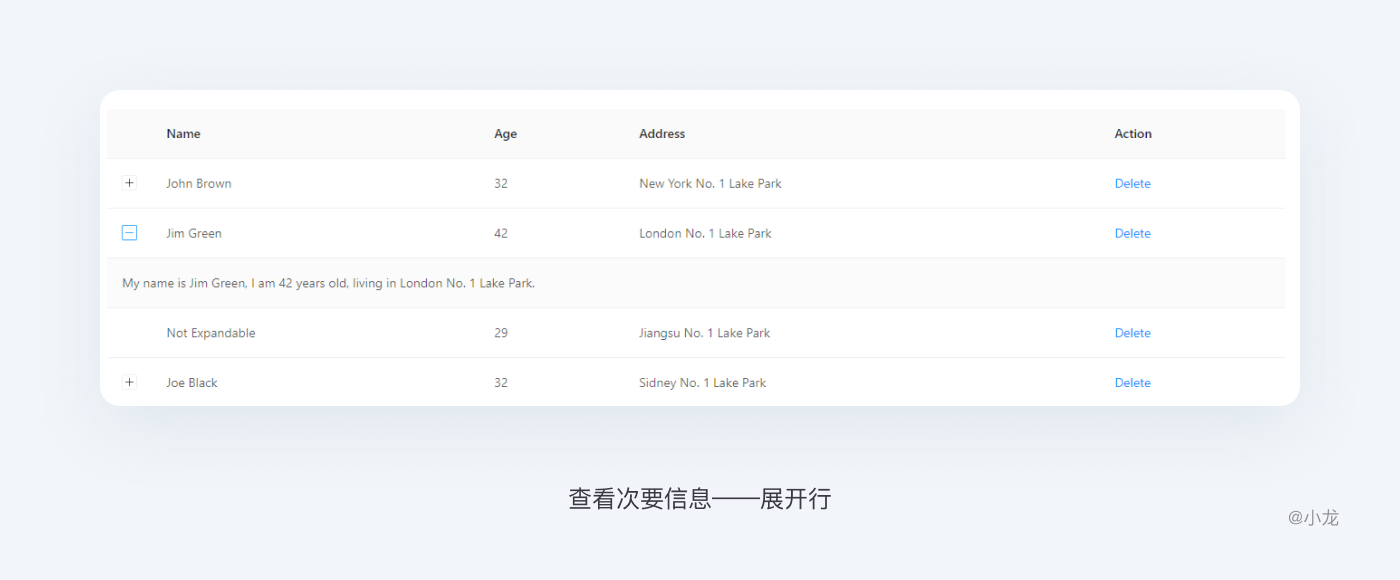 展開行允許用戶無需打開新頁面在表格內即可查看附加信息,防止用戶迷失。